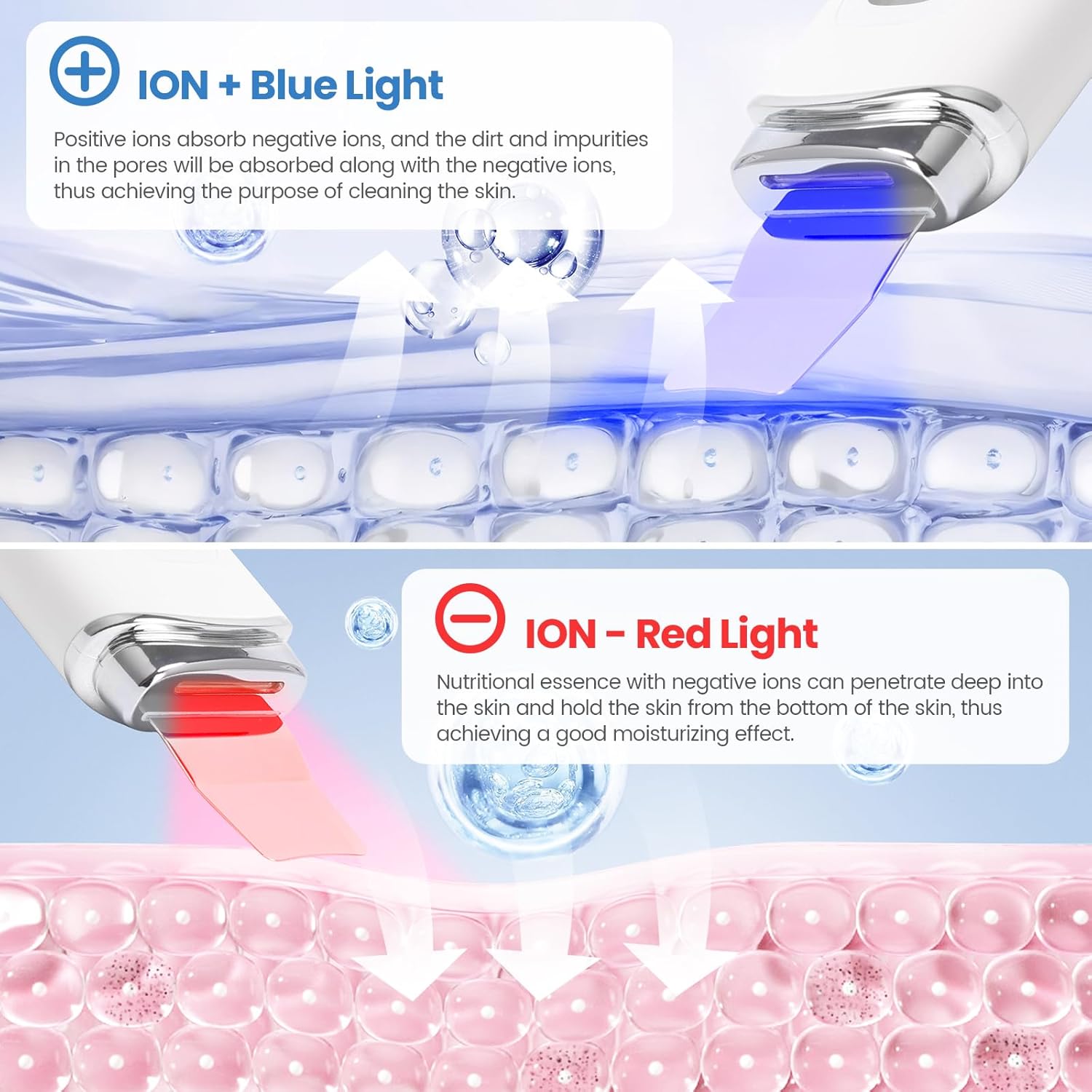 - 【Adjustable 4 Modes Skin Scrubber】The multi-functional skin scrubber face spatula allows you to experience a complete and well-designed skincare routine. Its 3D curved stainless steel spatula effortlessly navigates your face, even around tricky areas, removing buildup and debris. Simply wet your face and glide the spatula for a spa-like experience, with Cleansing and Lon+ modes for deep cleansing by removing, and Lon- and Lifting modes for maximising the benefits and messaging of skincare products by introducing. Note: The recommended frequency of use is 2-3 times per week.