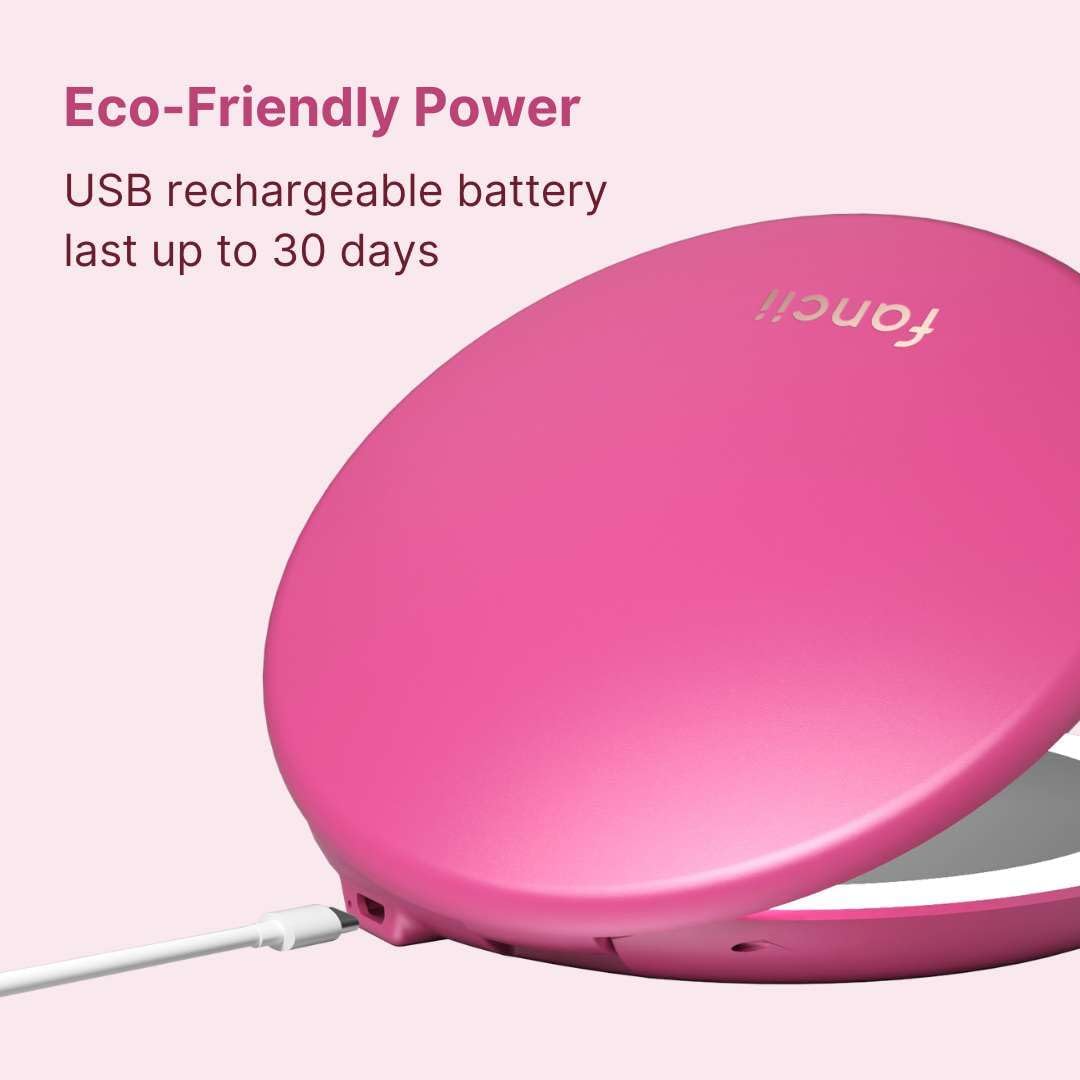 Fancii Taylor Compact Travel Mirror with Light, Rechargeable, 10x /1x Magnifying, 3 LED Light Settings - Best for Makeup, On The Go Touch-Ups, (Magnolia Burst)