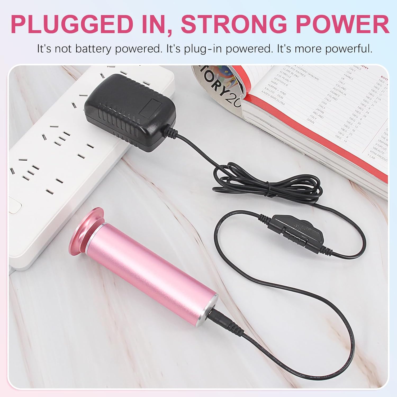 - PLUG IN ELECTRIC FOOT FILE WITH STRONG POWER: When using electric foot callus remover, keep the adapter plugged into the socket, so the power output is stable and strong, making it easy to remove dead skin from the heel. (Please note that electric foot sander callus remover is not battery powered)