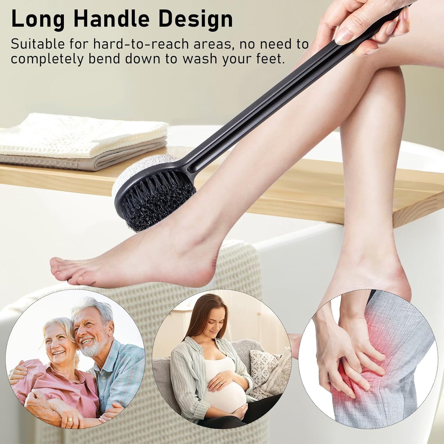 Pumice Stone for Feet with Long Handle (Double-Faced Straight Black Handle, Count, 1.0)