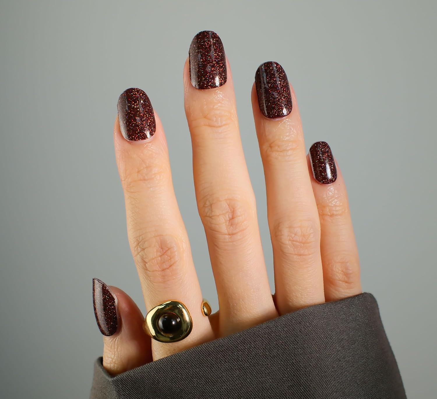 Nail Polish Strips, 32PCS Salon Quality Wraps, Long Lasting Gel Nail Stickers for Women Easy Apply& Remove (Chocolate Brown Glitter)