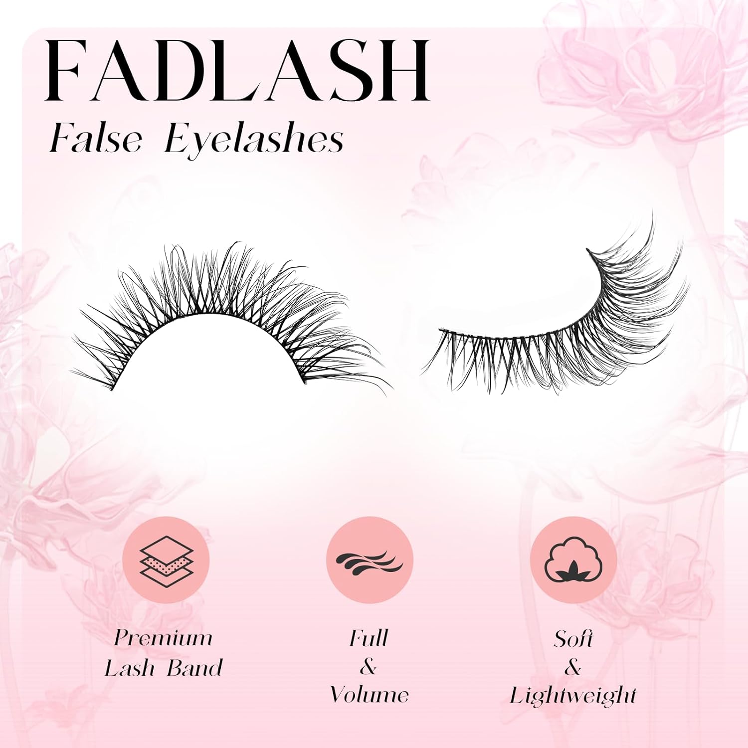 False Eyelashes Natural Look Cat Eye Lashes Wear Comfortable Black Fake Lashes with Thin Band, Pack 10 Pairs, BY004 FADLASH