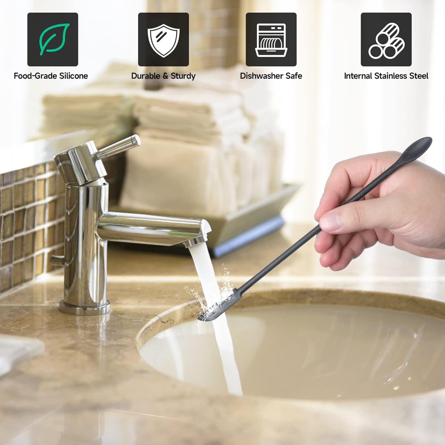 - No Waste of Any Little -- The makeup silicone spatula has a long enough body and narrow head for reaching food in jars and other tnarrow spaces,even for bottle with slight opening,you will not waste.