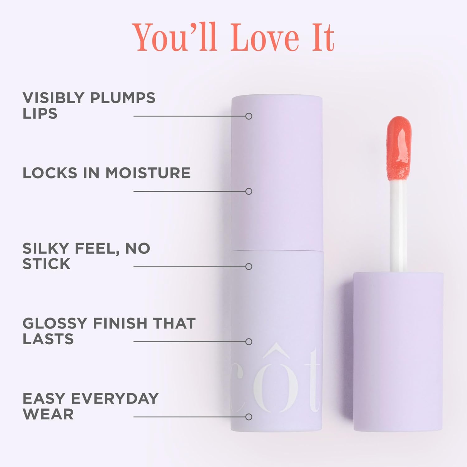 Côte Beauty's Peptide Lip Shine in Branson, Ultra Hydrating & Long-Lasting Coral Plumping Lip Gloss for Women with Hyaluronic Acid, Shea Butter & Jojoba Oil, Vegan & Cruelty-Free, 0.12 Fl Oz