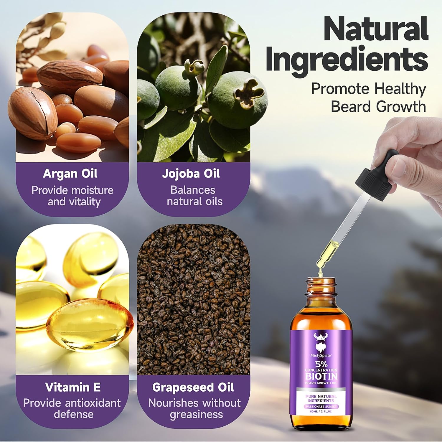 - 5% Biotin Pinnacle Concentration: Golden molecule ratio 5% of the biotin in the beard growth oil is the upper limit of the active essence - the highest effective concentration verified by the laboratory, one point less is ineffective, one point more stimulation, aerospace-grade penetration system - nano-sized carrier precision delivery of nutrients, every drop directly to the hair follicle stem cells