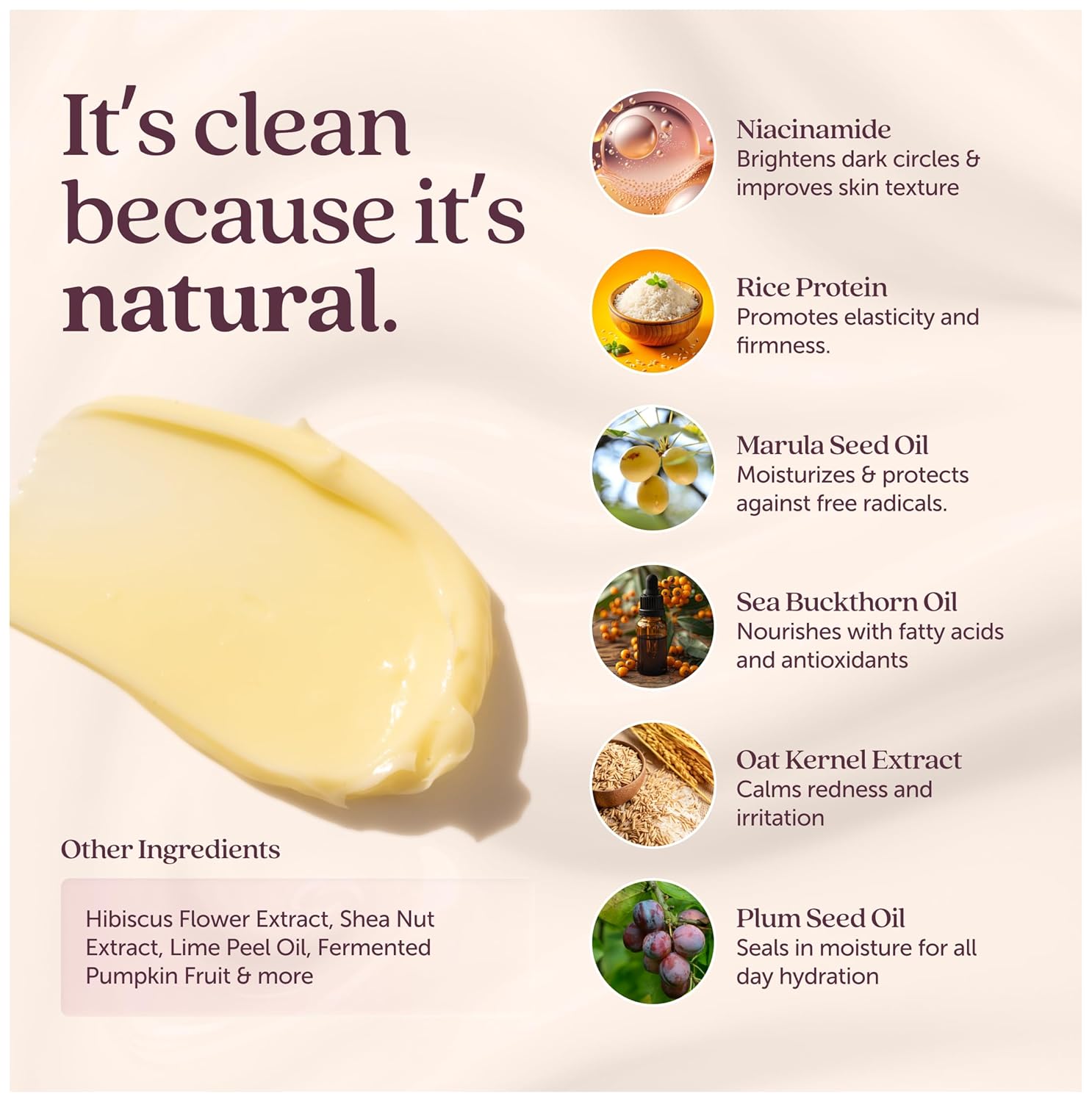 Cosmette Bright Embrace Brightening Eye Cream, Vegan Under Eye Butter for Dark Circles & Wrinkles with Niacinamide, Protect Sensitive Skin Against Aging, Natural Skincare for Clean Beauty, 0.5 FL Oz