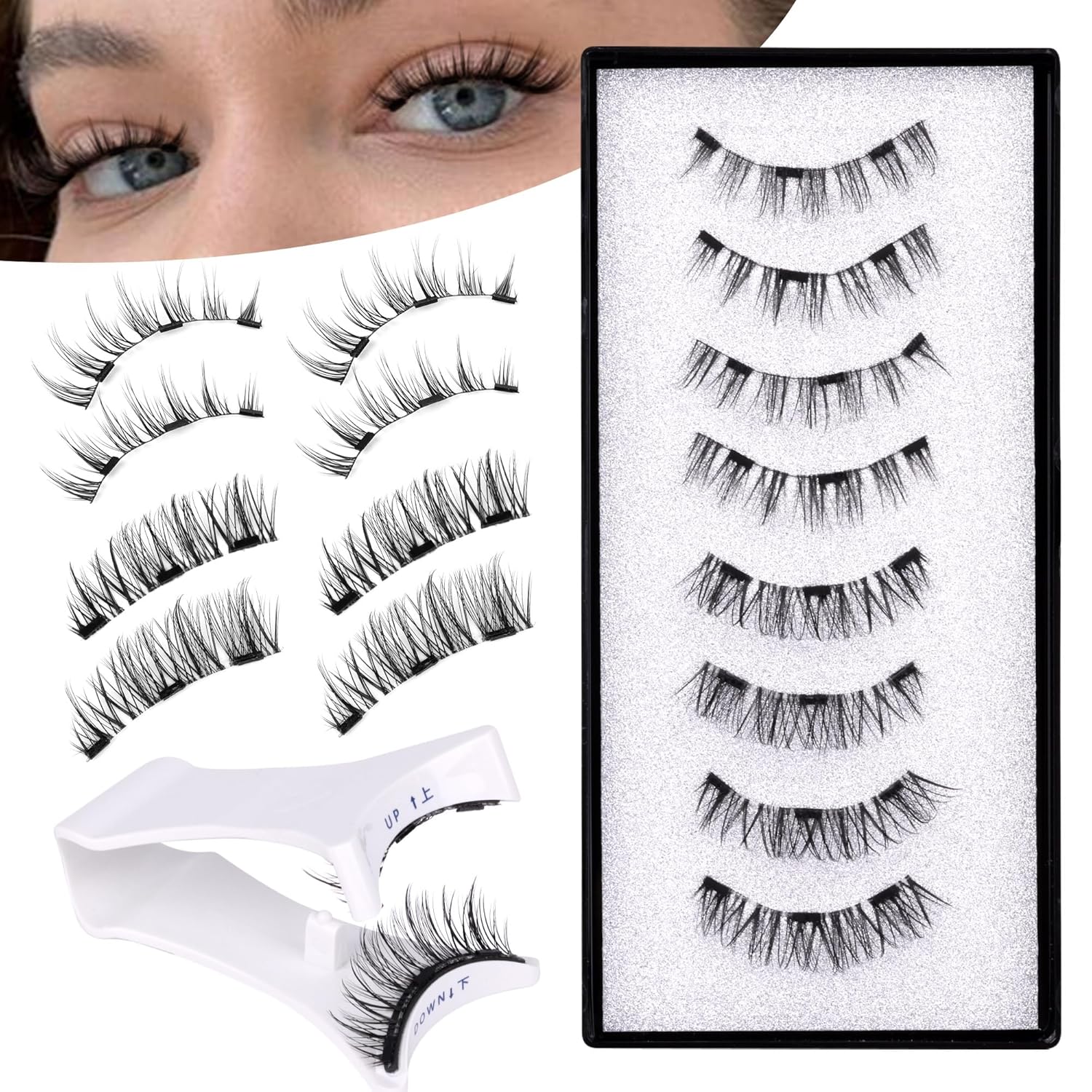 - Magnetic Eyelashes with Applicator- The magnetic lashes is super easy to wear you can get your lashes on anytime anywhere. The ergonomic lash applicator is fit with ervey shape of eyes, so everyone could get a perfect magnetic eyelashes easily
