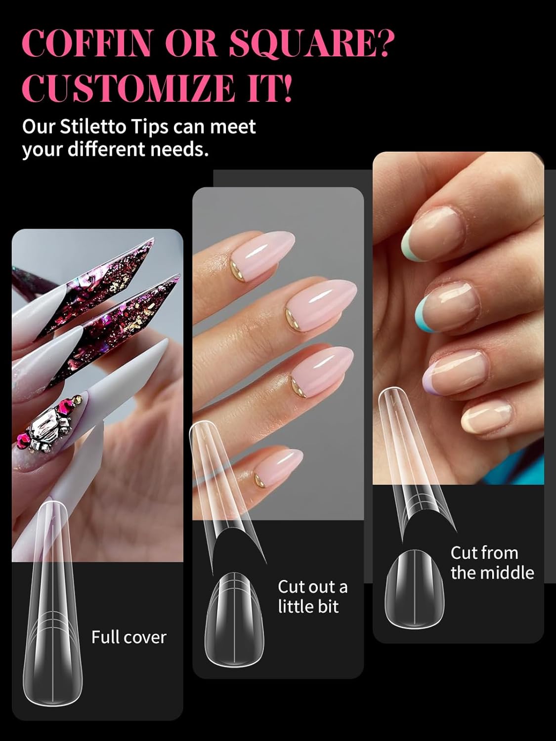 - 【Sturdy No C Curve Gel Nail Forms】Reusable extra long nail molds are made with high quality material, which is strong, tough, and reusable, providing you with a different lengths nail art experience that lasts.This artificial nails forms protective sleeve has a small handle on both sides, which is convenient for constructing gel nail extension nails, and will not stick to your hands, and can be easily removed after application.