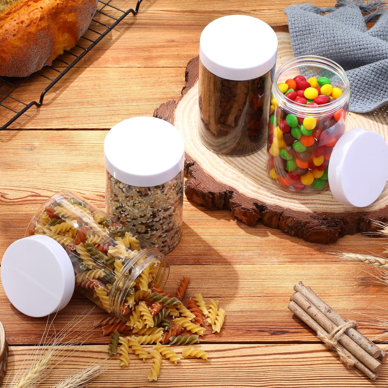 - Quality Material: these transparent containers jars are made of quality PET plastic with cylindrical design, thick and wear-resistant, ideal for long-time use