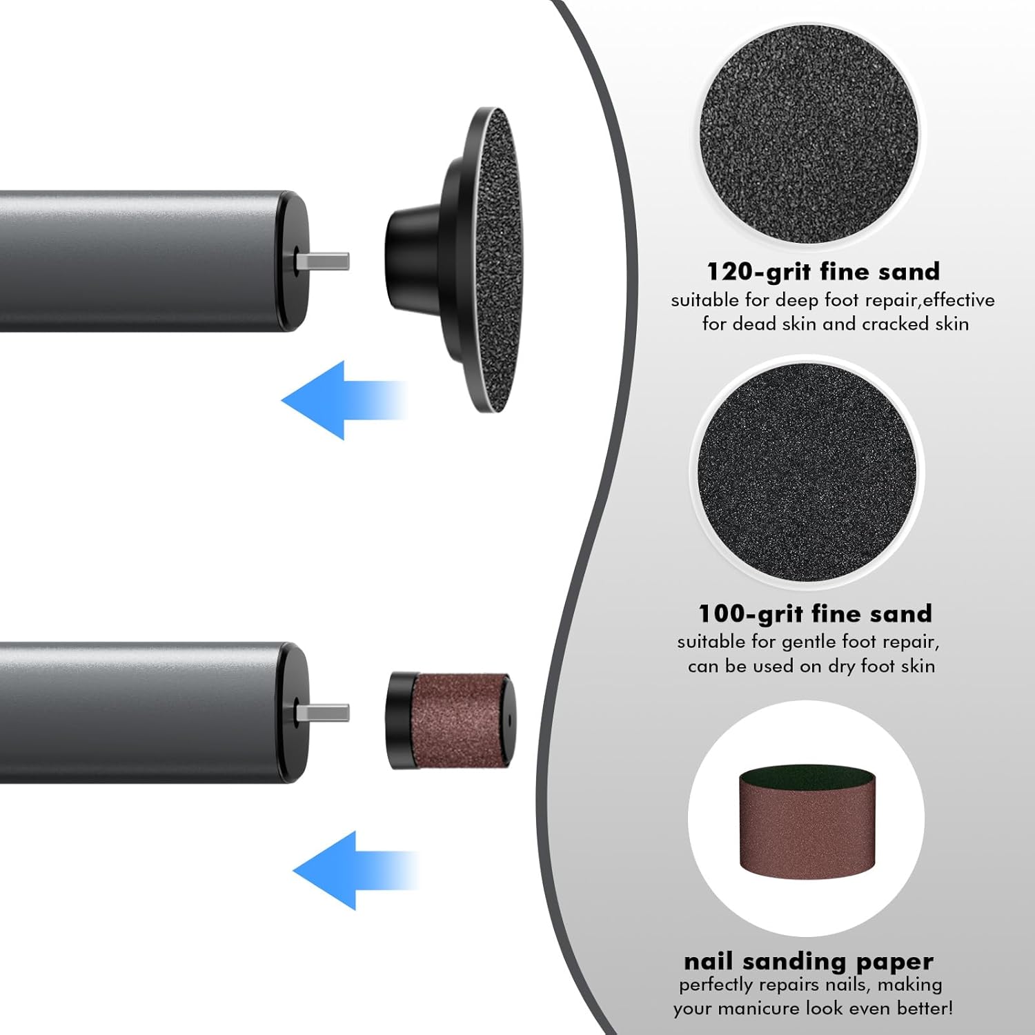 - Foot Care Callus Removal: This professional electric foot callus remover can not only remove stubborn calluses and dead skin from the feet, but also accurately polish nails. One nail grinder can easily meet your foot and hand care needs