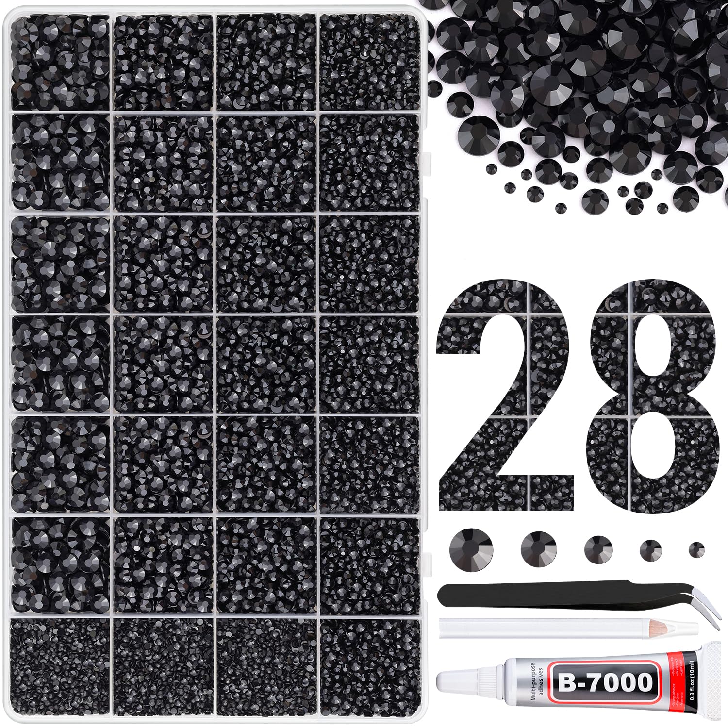 30000Pcs Resin Rhinestones for Bedazzling with Tweezers, Black Rhinestones for Crafting with B7000 Jewelry Glue for DIY Crafts Clothing Tumblers Shoes Fabric Nail Art