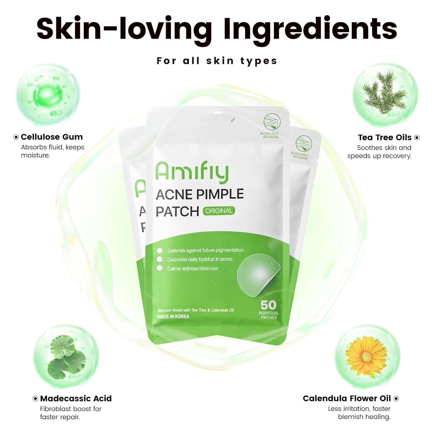 - Natural Ingredients with Tea Tree, Calendula Oil and Madecassic Acid: No drugs here — just gentle, plant-based ingredients that your skin will love. These pimple patches is suitable for all skin types, even sensitive skin.