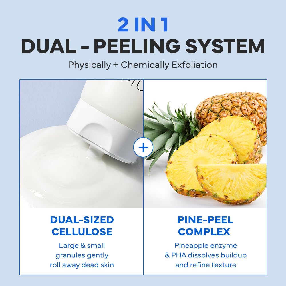 - Enzyme + PHA Infused - Formulated with PHA and pineapple enzymes (bromelain) to refine texture, clear buildup, and reveal visibly smoother, more radiant skin.