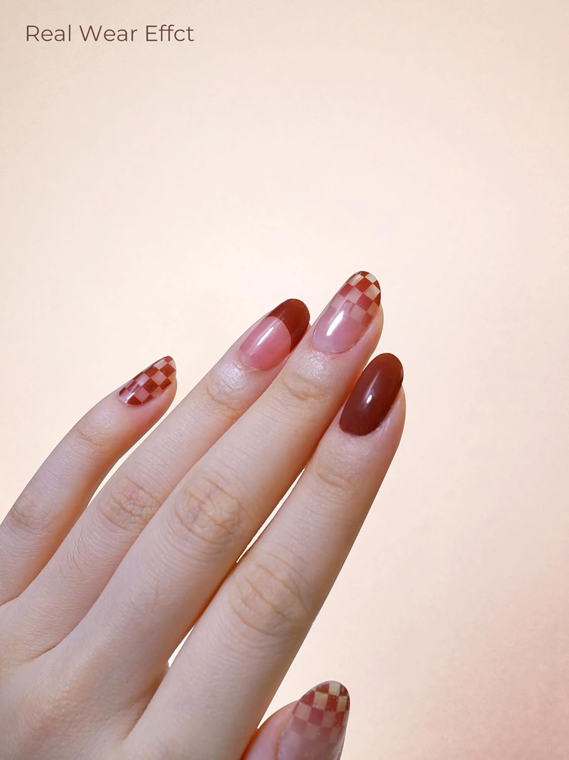 Pre Cured Gel Nail Strips - 44PCS Salon Quality Gel Nail Stickers - Long Lasting Polish Wraps for Women no UV Light Needed Easy Apply& Remove (Chestnut Brown)