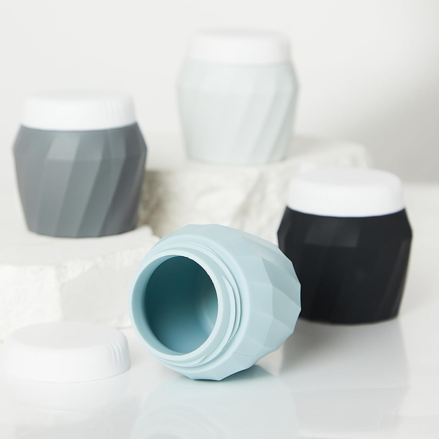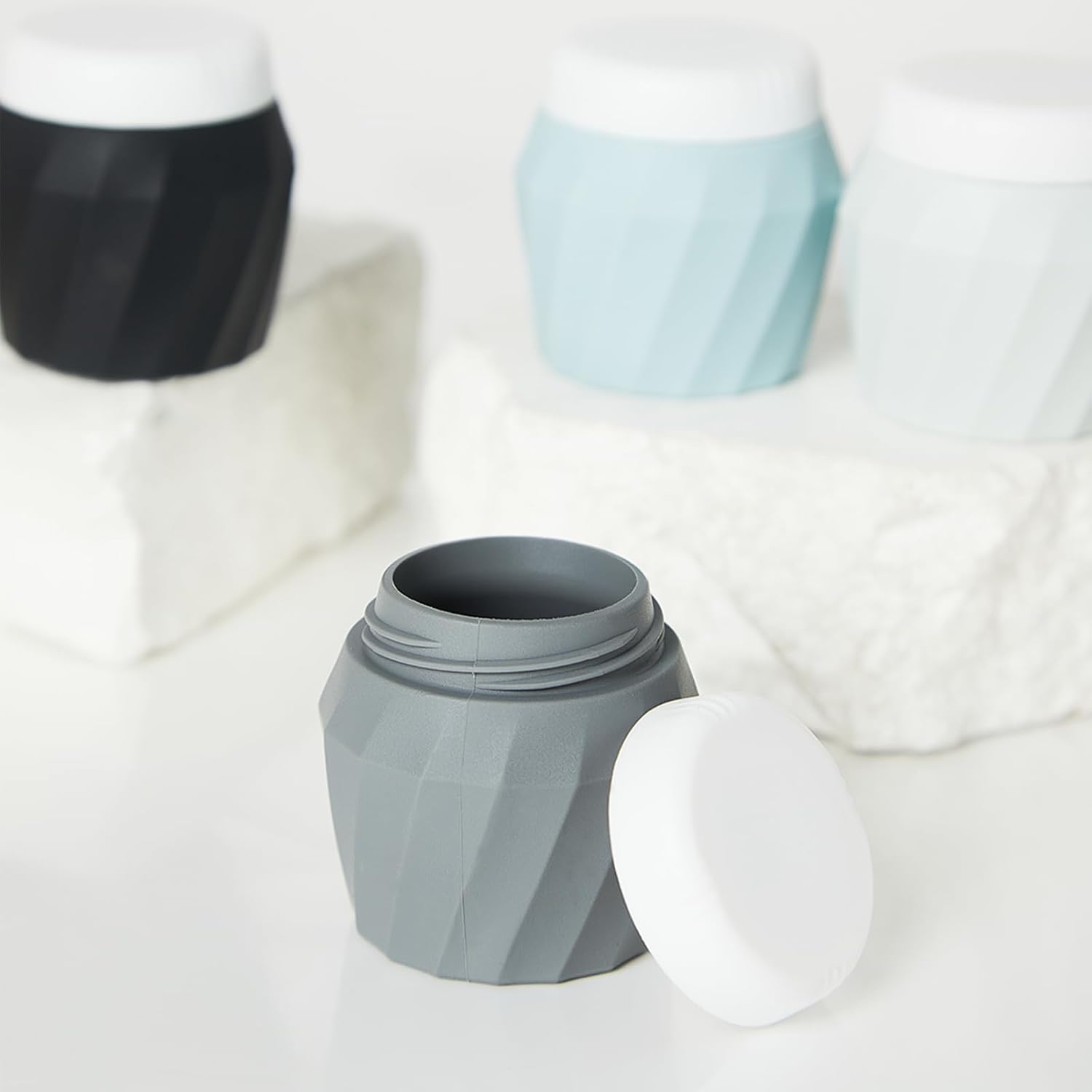 - 【MULTI-PURPOSE USE】Travel Containers for Toiletries have multiple uses. Travel silicone cream jars with lids can store creams, lotions, make-up, scrubs, ointments, accessories, beads, small jewelry and more. Works great for gel-type items