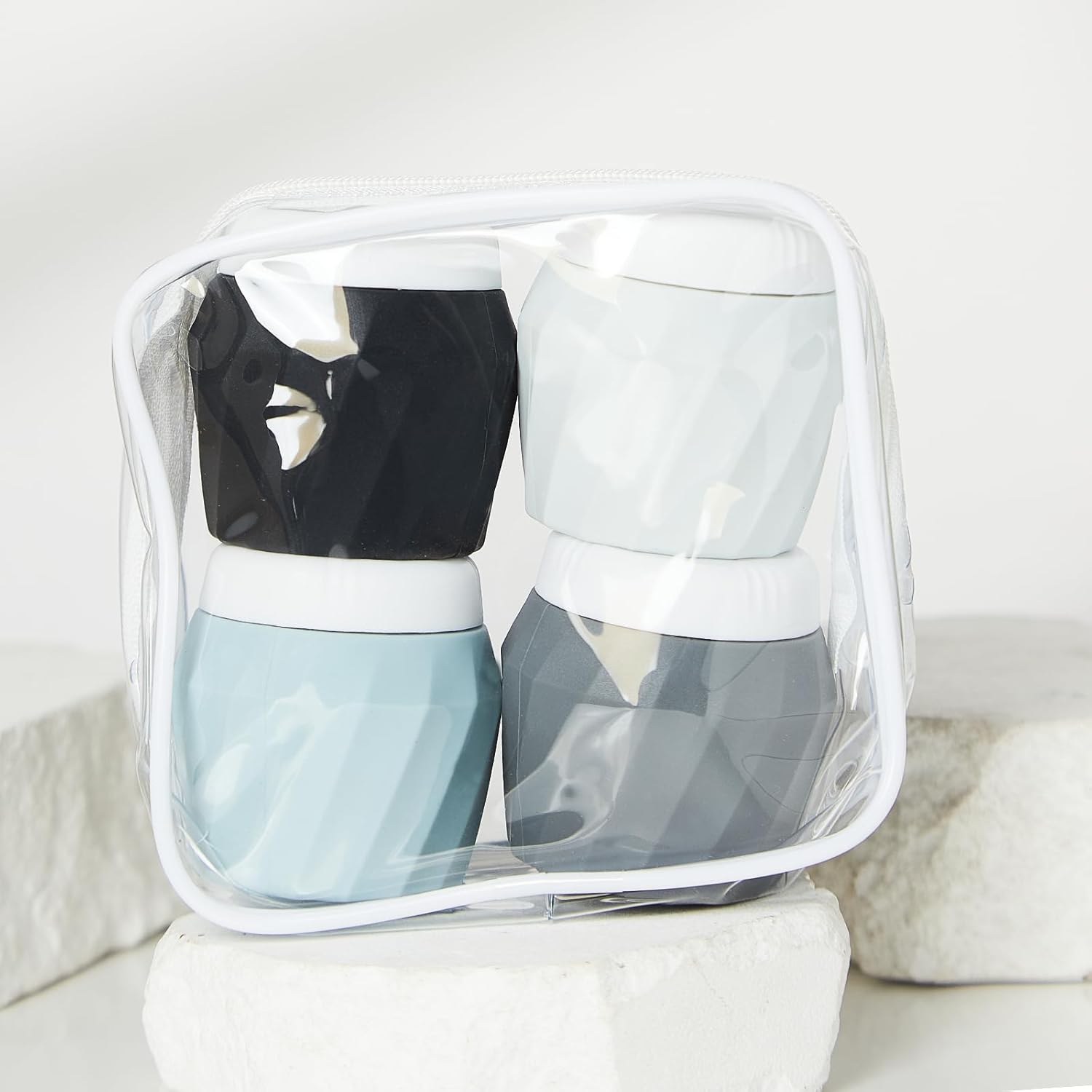 Travel Containers for Toiletries, Premium Silicone Cosmetic Cream Jars, TSA Approved Leak-Proof Refillable Travel Size Toiletries with Clear Bag for Cosmetic Face Body Cream (Gray, 1.7OZ)