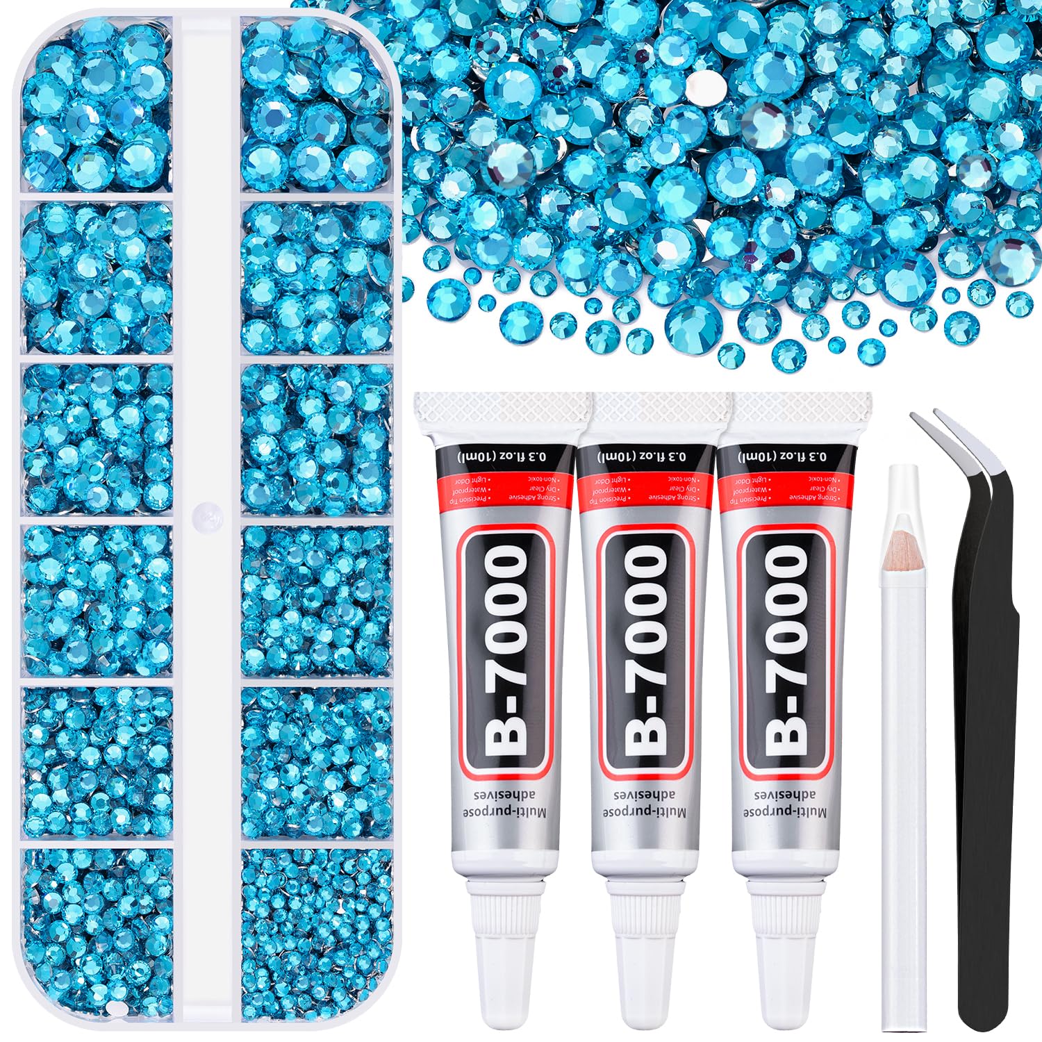 6000Pcs Resin Rhinestones for Bedazzling with 3Pcs B7000 Jewelry Glue, 1 Box Indicolite Flatback Rhinestones for Crafting Crafts DIY, Crystals Gems for Clothing Shoes Tumblers Nail Art Makeup
