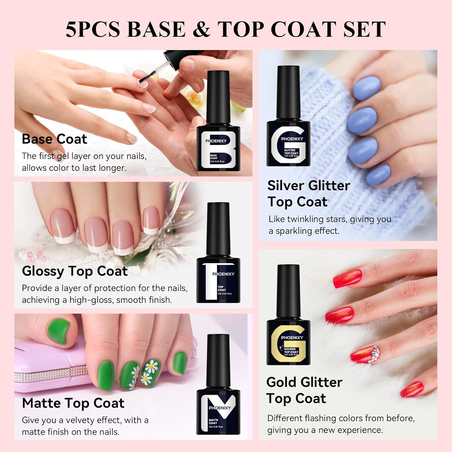- Included Components : 25*7ml colors gel polish, base coat, top coat, matte top coat, gold glitter and silver glitter top coat 25*7ml colors gel polish, base coat, top coat, matte top coat, gold glitter and silver glitter top coat
