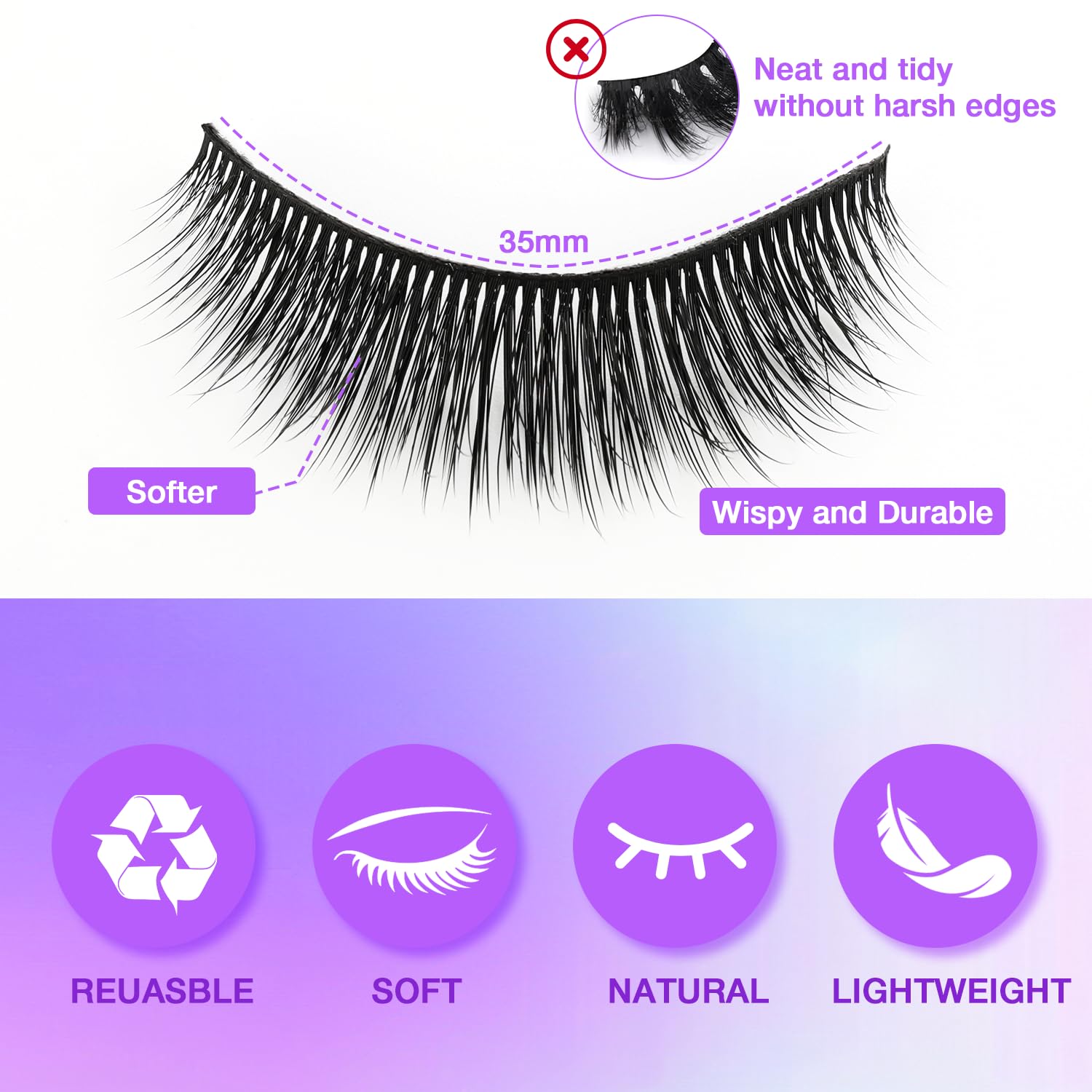 - All-Day Waterproof Warrior: Sweat-proof, rain-ready fake eyelashes that stay flawless for 12+ hours! Natural-looking strip lashes with flexible band won’t lift corners. Perfect for weddings, workouts, or humid days – reusable wispy magic!