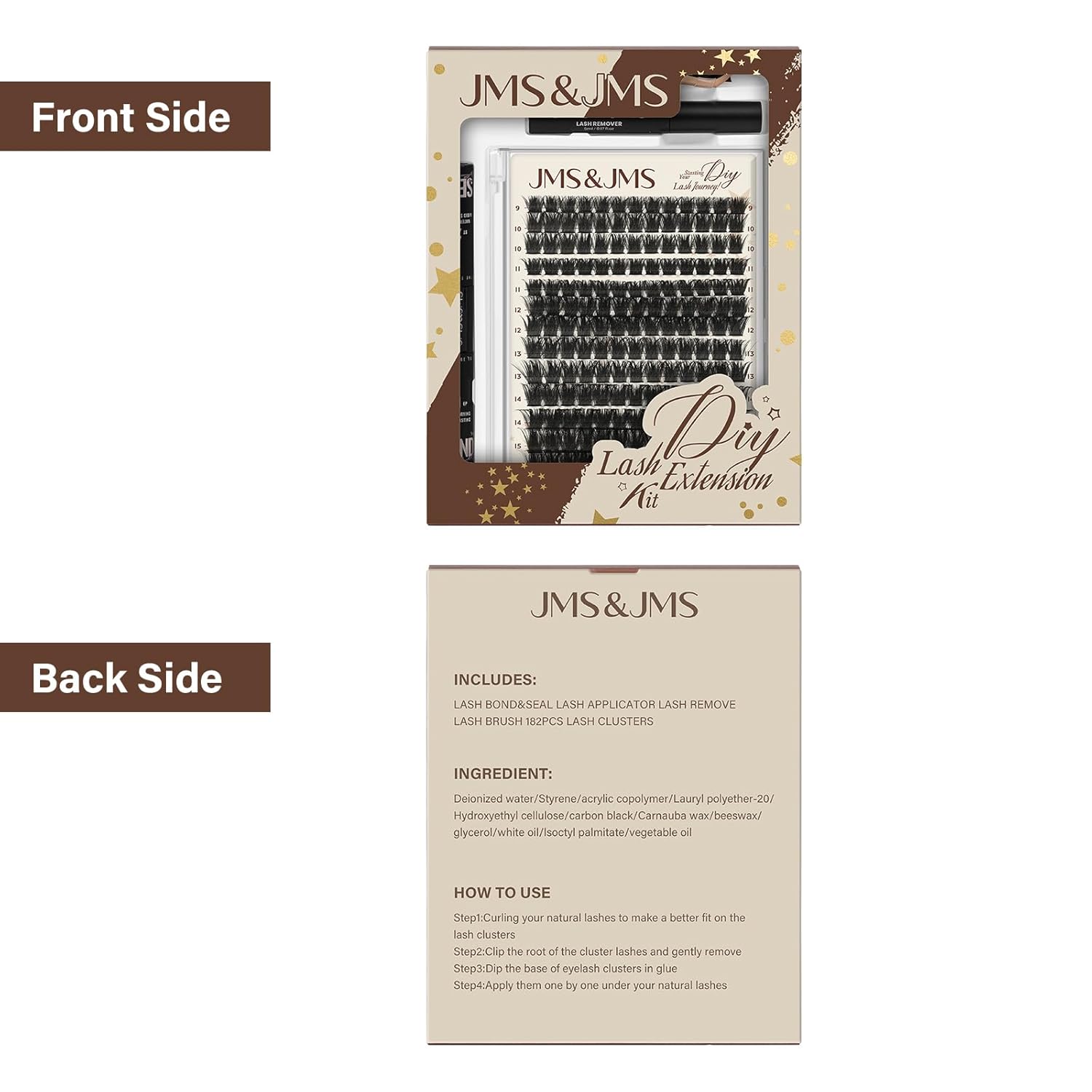 JMS&JMS DIY Lash Extension Kit Lash Clusters Kit 200D D Curl Individual Lashes Eyelash Extension Kit 182pcs Thin Band Cluster Lashes Lash Bond and Seal Tweezers Easy to apply