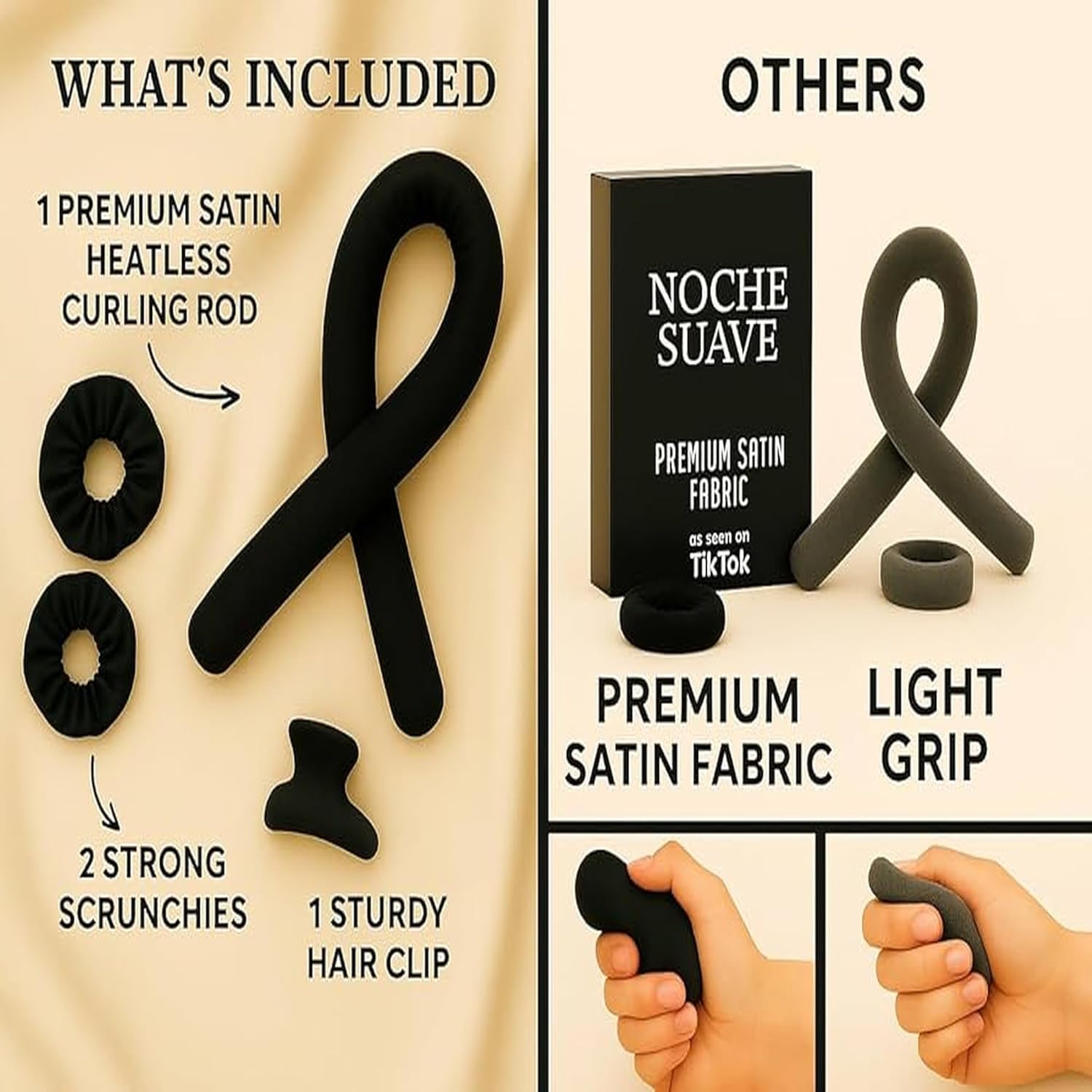 Nochesuave Heatless Hair Curler Headband – Overnight Curl Kit with Satin Curling Rod, Scrunchies & Claw Clip – Heatless Curls Overnight, No Heat Hair Rollers for Long, Medium & Fine Hair