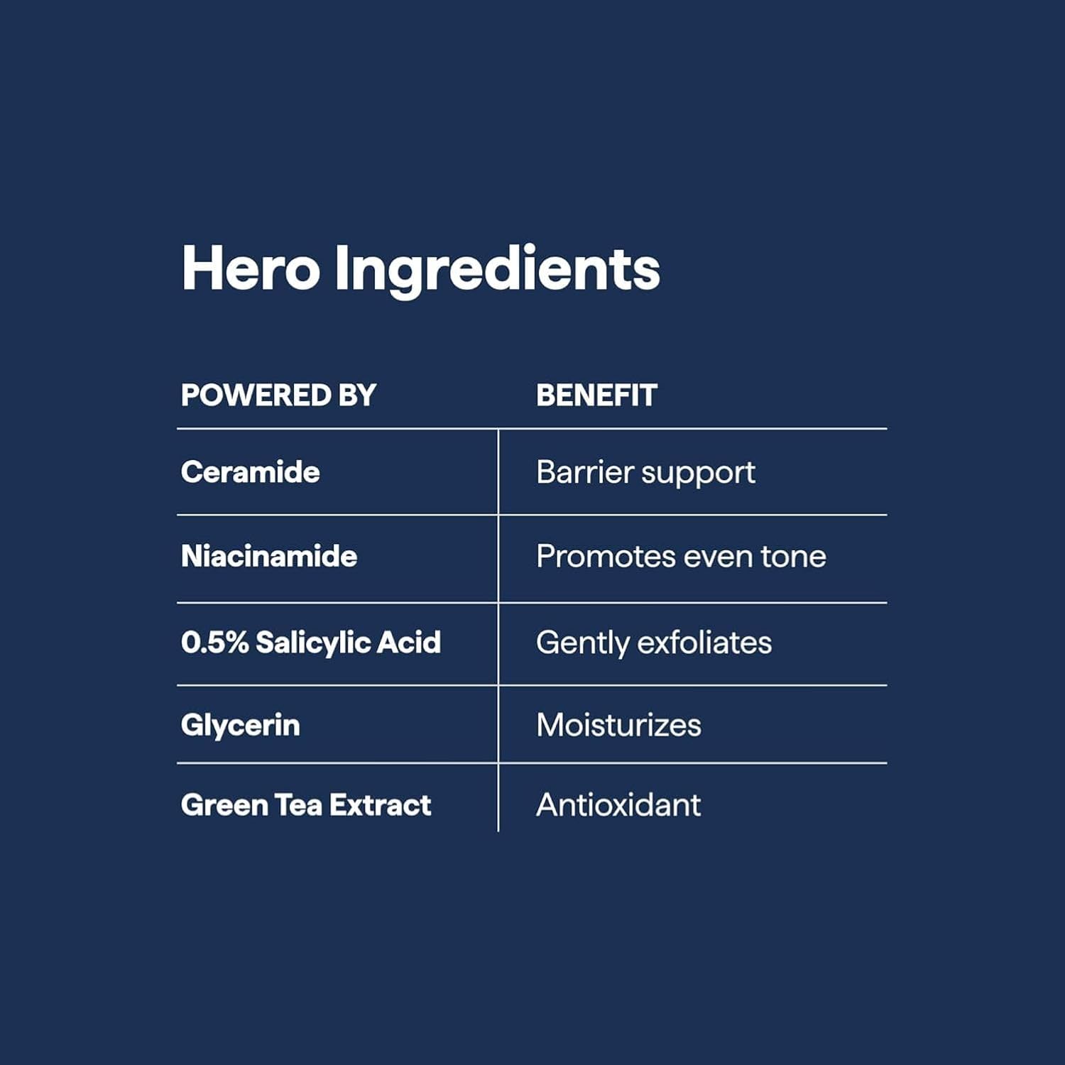 - 4 HERO INGREDIENTS Features Ceramide NP, Glycerin, Hyaluronic Acid, and Panthenol to cleanse, hydrate, soothe, and strengthen the skin barrier in one gentle formula.