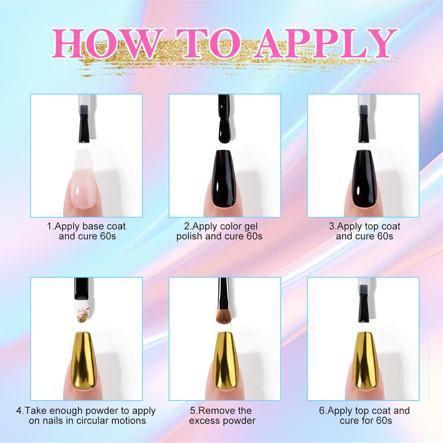 - Versatility: These powders work with gel polishes (color gel, gel base, and gloss gel top). Some traditional polishes may be compatible. Suitable for natural, UV gel, acrylic, or artificial nails. Application is simple. Easily enhance nail art with rhinestones, nail films, or other accessories