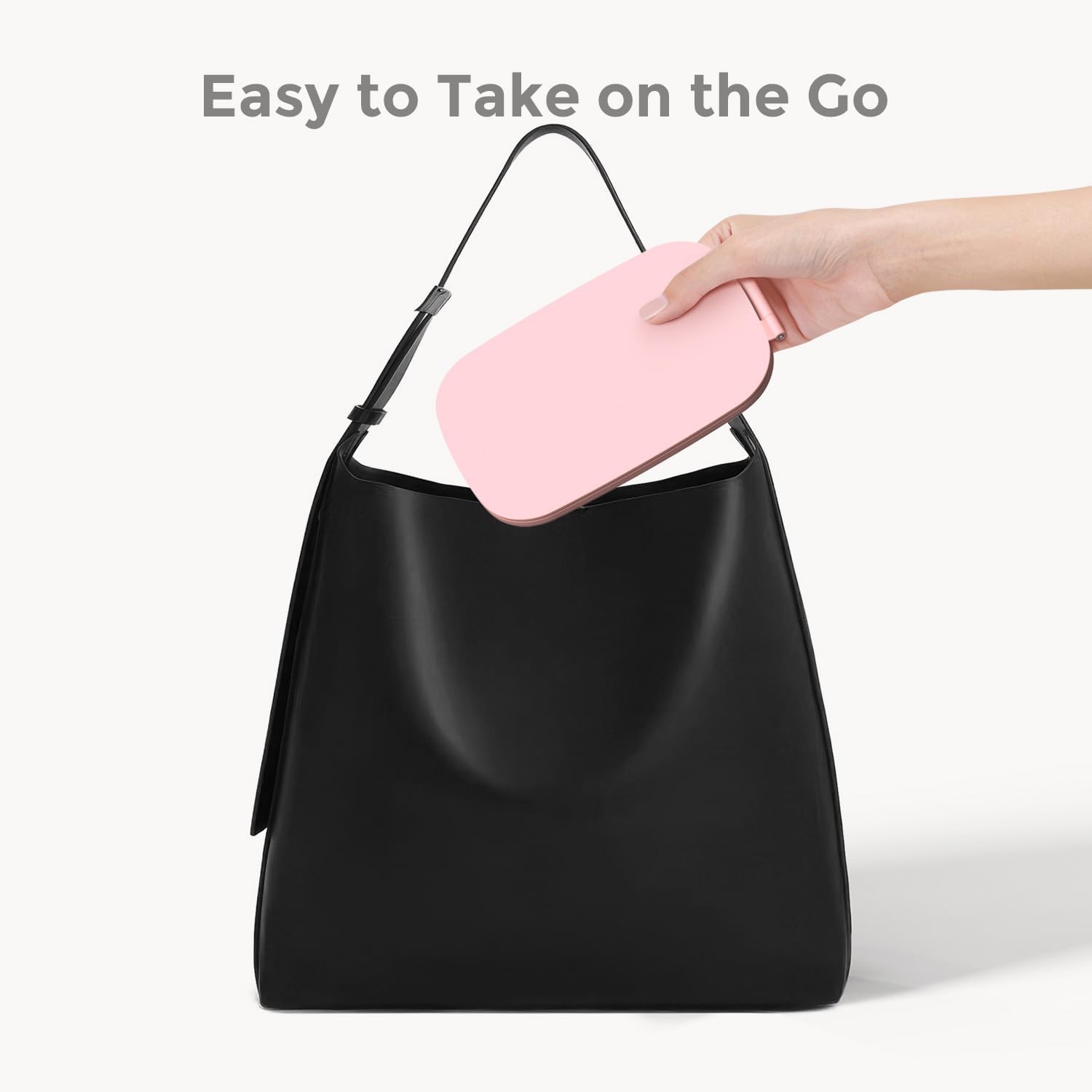 Travel Mirror with Light, Rechargeable Foldable Portable Mirror, 3 Color Lighting, 7.5 inch, Pink