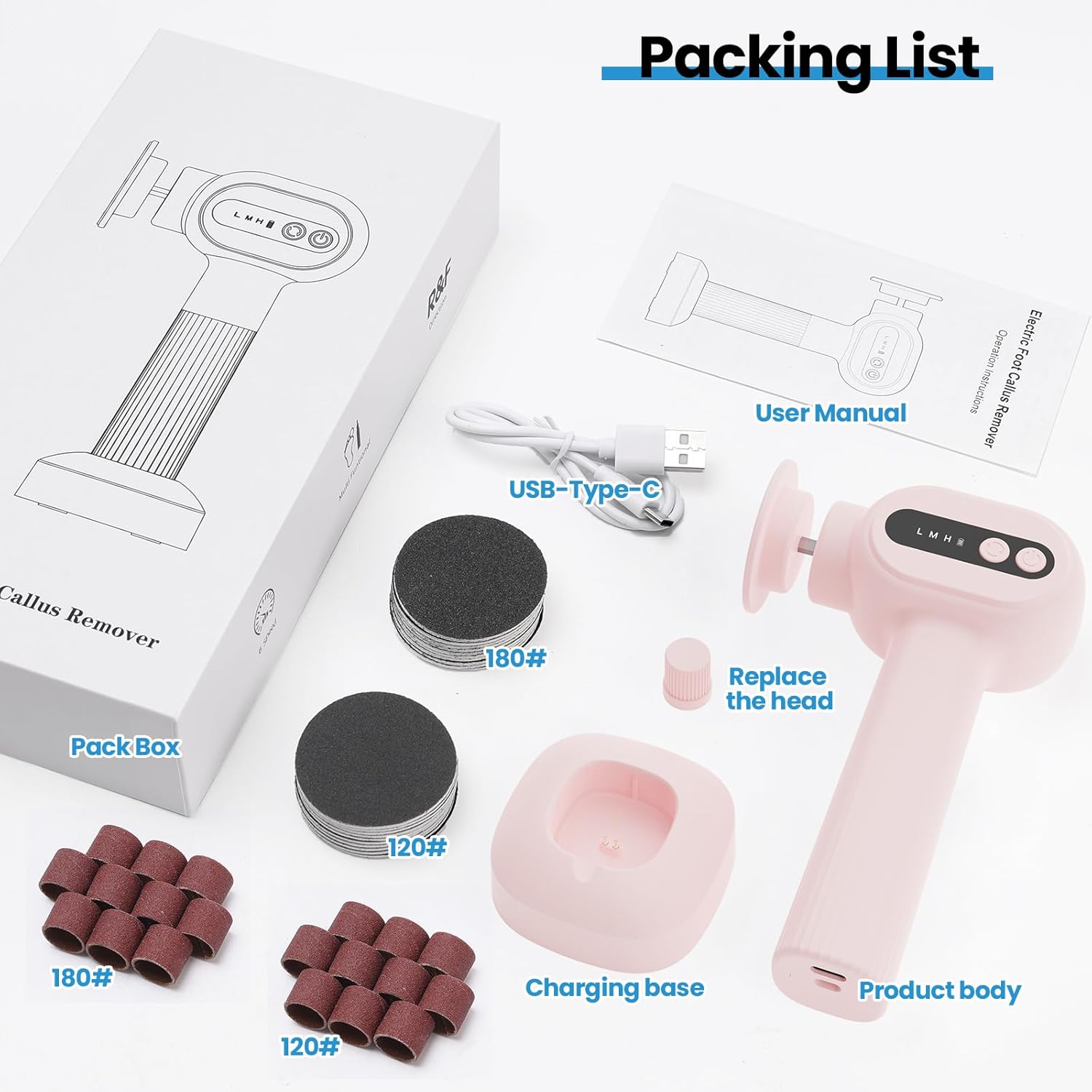 - 60 PCS Replacement Sandpapers Included in the Gift Box : 20 PCS each sandpaper(Fine 120 Grit + 60pcs Smooth 180 Grit),20 PCS ring sandpaper for nail grinder.Exclusive foot smoother pedicure tools for your feet