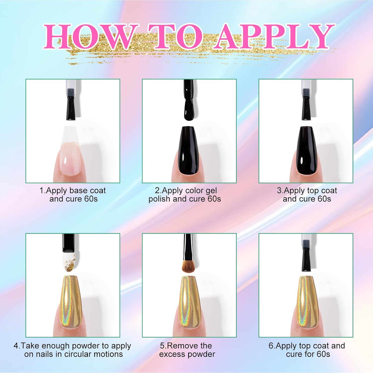 - Versatility: These powders work with gel polishes (color gel, gel base, and gloss gel top). Some traditional polishes may be compatible. Suitable for natural, UV gel, acrylic, or artificial nails. Application is simple. Easily enhance nail art with rhinestones, nail films, or other accessories