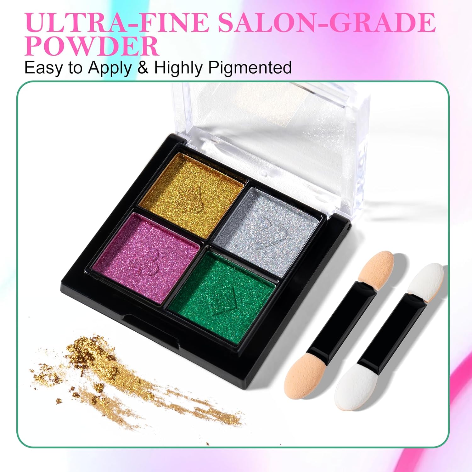 NXJ INFILILA Holographic Chrome Nail Powder, 4 Colors Gold, Silver, Pink, Green Rainbow Unicorn Iridescent Glitter Pigment Dust for Nail Art Design Professional Salon & Home Use