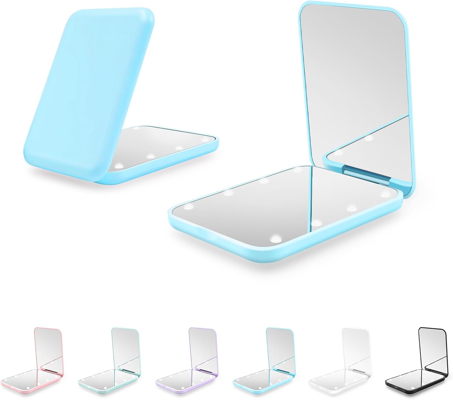 Compact Mirror, 1X/3X Magnification LED Pocket Mirror with Nternal BIattery, Mini Mirror for Purse, Pocket,Travel and Present (Blue)