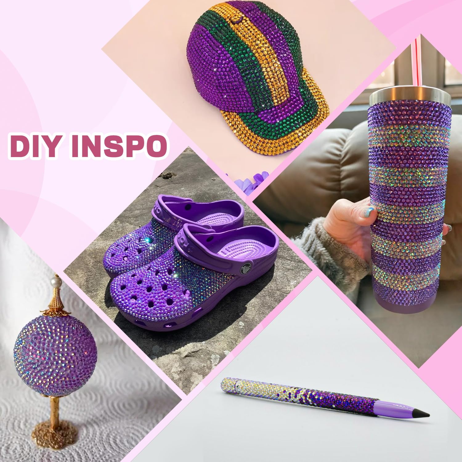 20000Pcs Purple Rhinestones for Bedazzling with 1Pcs B7000 Jewelry Glue, Resin Rhinestones for Crafting Crafts DIY, Bedazzler Kit Gems for Clothing Shoes Tumblers Nail Art Assorted Size 3/4/5/6mm