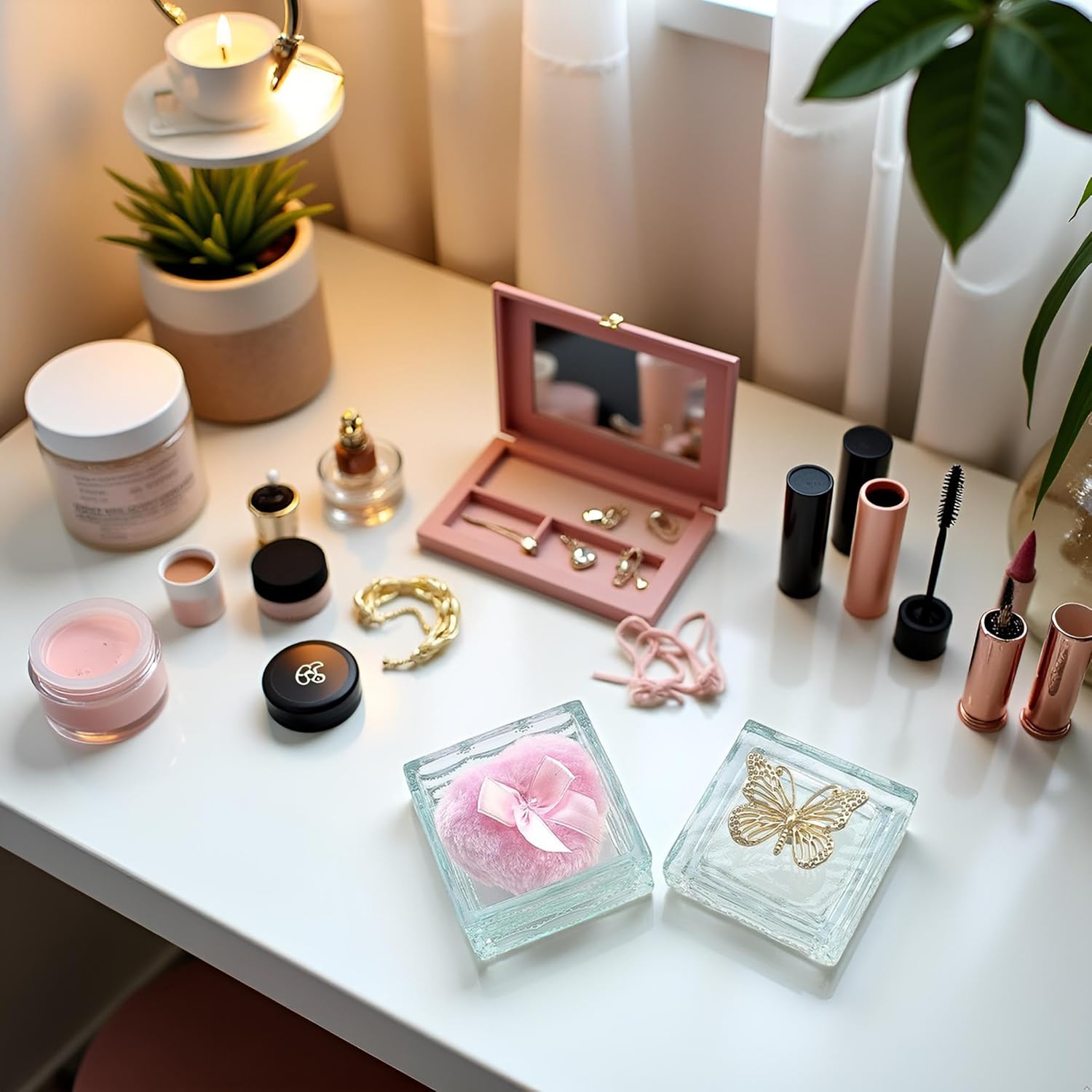 - 【Multi-Purpose Glass Box】This glass powder puff container can not only be used to organize your powder puffs, but also can be used to store earrings, rings, bracelets, hair accessories, trinkets and other items on your vanity, bathroom and bedroom. It can keep your items away from dust and water, and play a protective and decorative role to meet the needs of female users for cosmetic organization