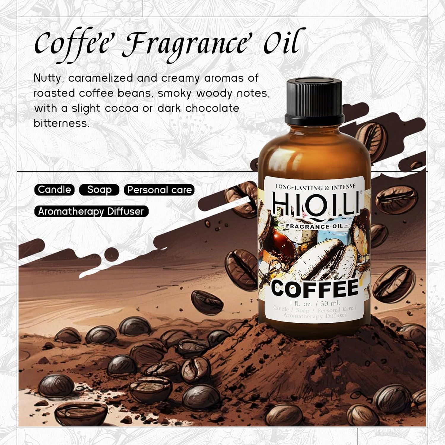 HIQILI Coffee Fragrance Oil for Scent Diffuser & Humidifier, Perfect for Candle, Soap, Perfume Making, New Car & Home - 1 Fl Oz