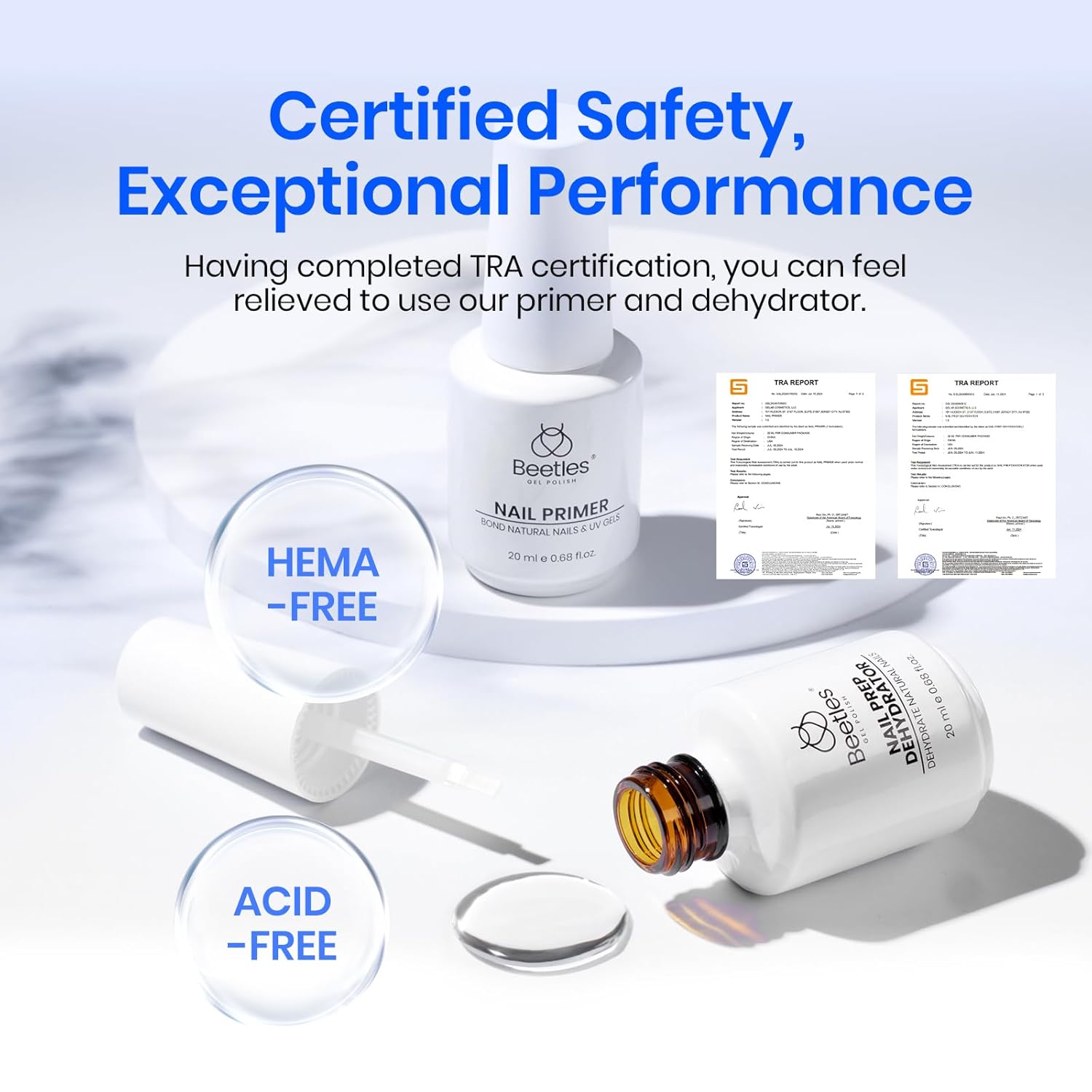Beetles Nail Dehydrator and Primer, 20ml Large Capacity Acid Free Natural Nail Prep Dehydrate and Primer for UV Gels Superior Bonding Professional Salons Set