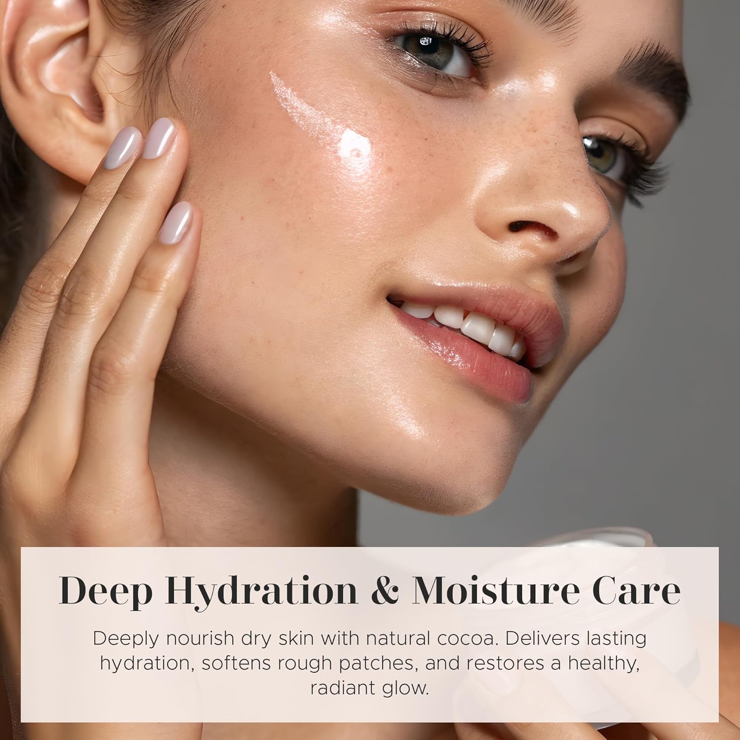 - NATURAL COCOA BUTTER HYDRATION: This body butter cream is made with natural goodness of cocoa for hydration without grease. A rich body cream for women that softens dry skin and absorbs fast—perfect for daily use on elbows, knees, and dry patches.