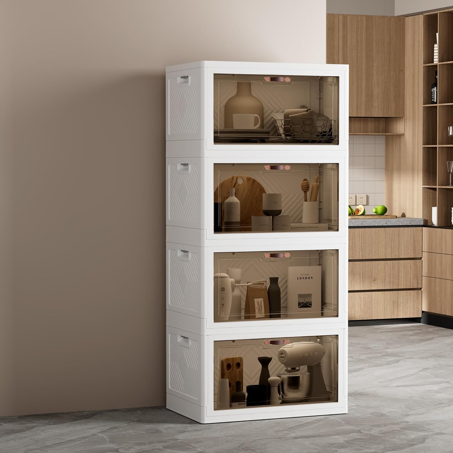 - [Foldable & Translucent] The foldable design provides more convenience. When you're not using these storage bins, you can fold them up and store them, saving more space. The translucent design of the storage box makes it easy to identify the contents of the storage box without opening it