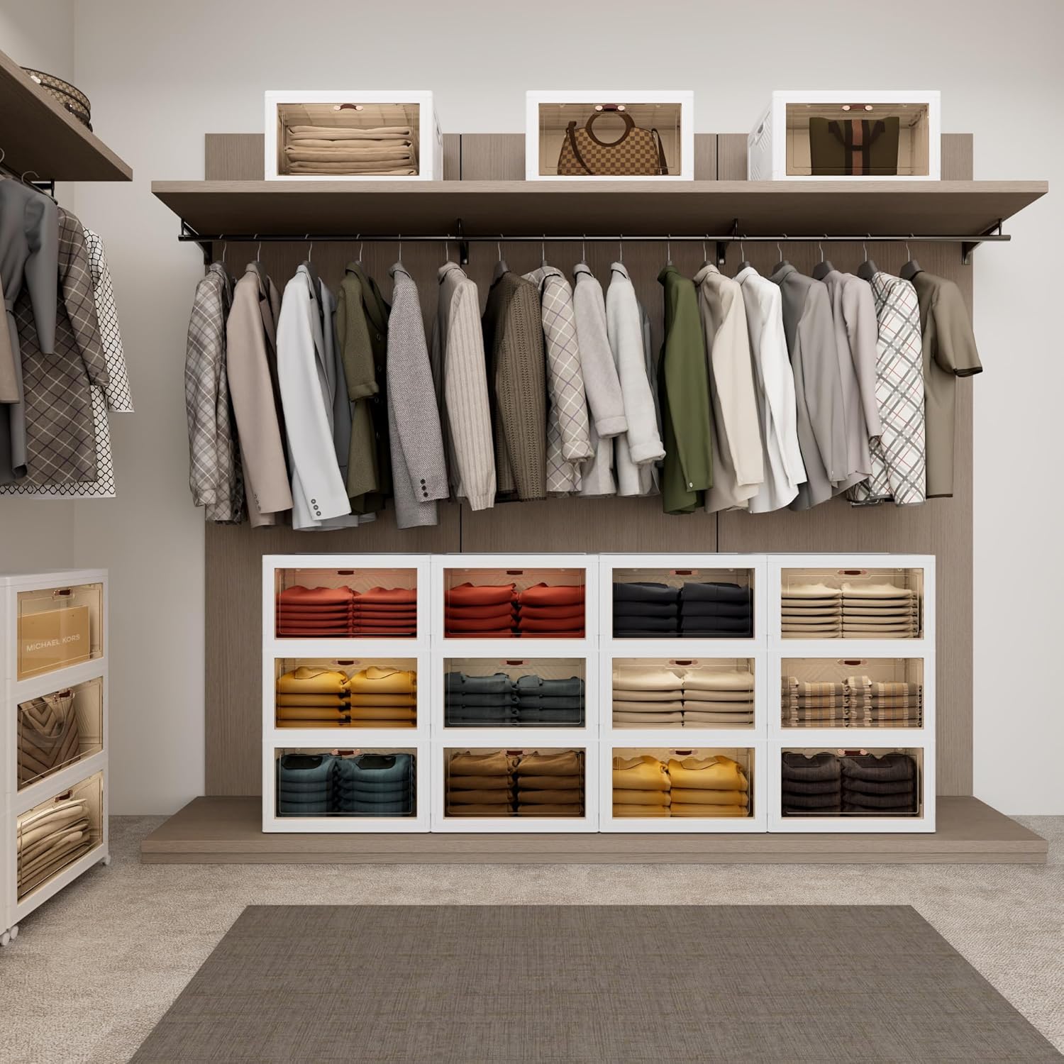 JOYMOOP 198 Qt Stackable Storage Bins with Lids, Closet Organizers and Plastic Storage Drawers for Home, 3 Pack Cubes