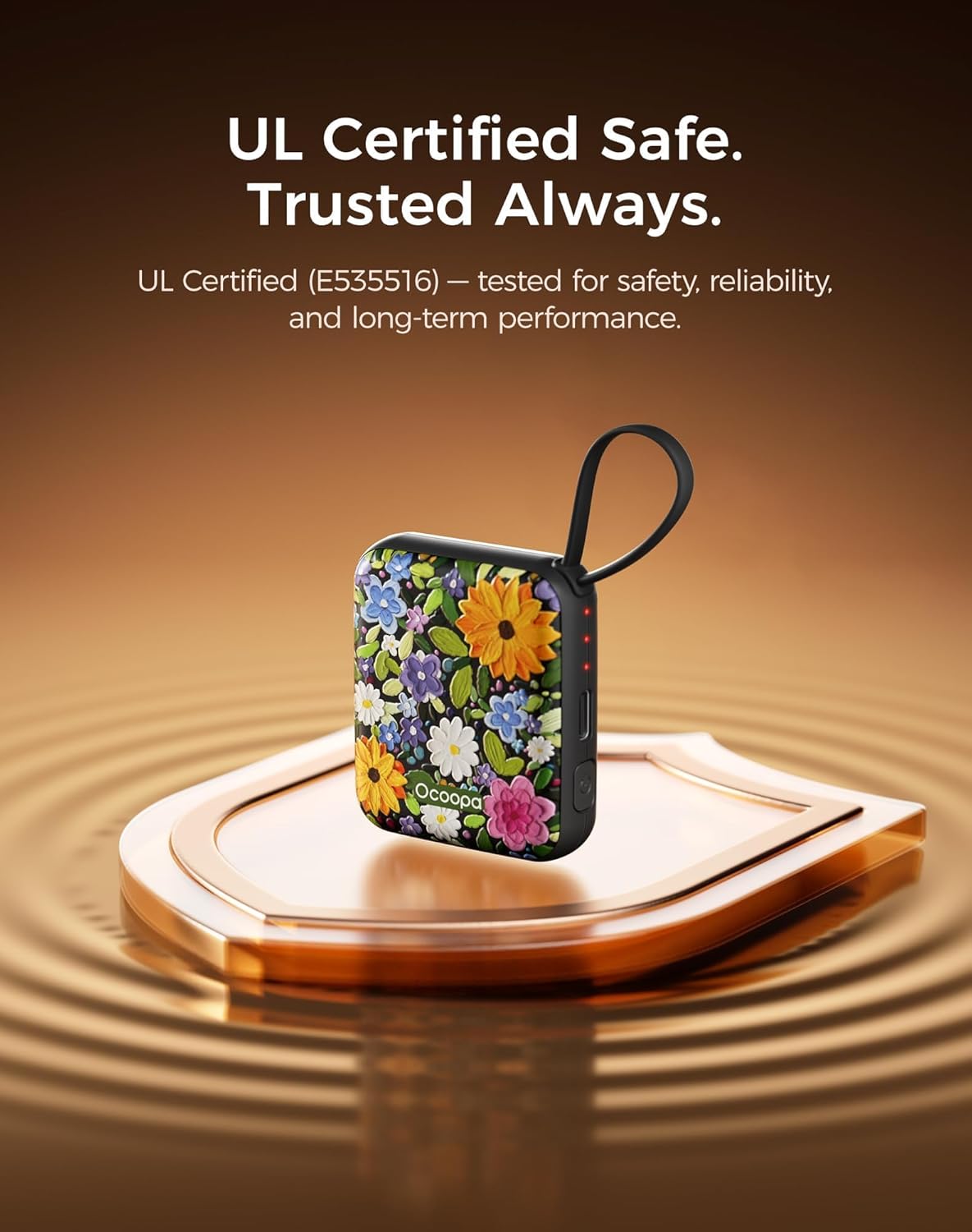 Ocoopa Hand Warmers Rechargeable UT5 Nano – Slim Electric Pocket Heater, Smart Temp Control, 14Hrs Battery, UL Safety, Artists in Bloom Design, Practical Gifts for Women, Christmas, Outdoor, Office