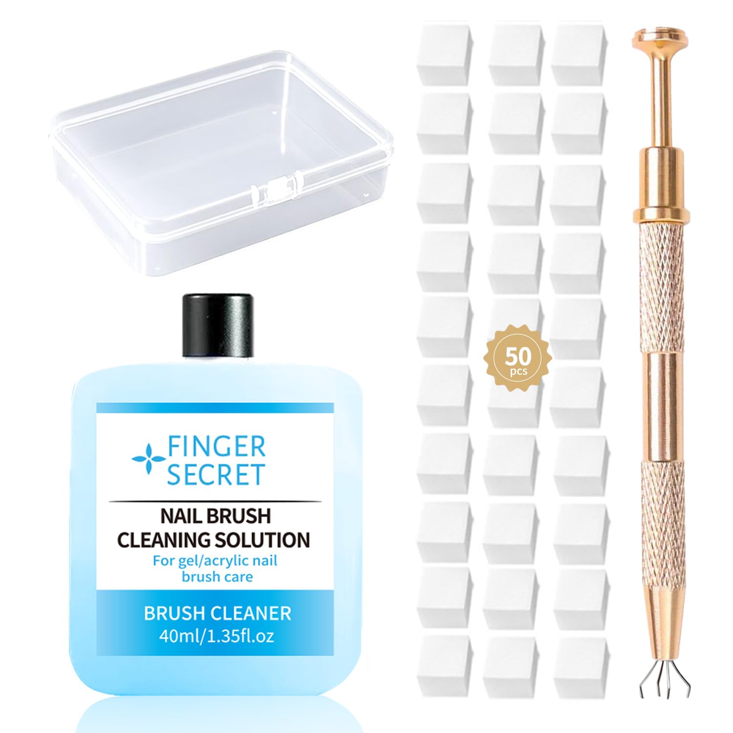 Nail Sponges Set for Ombre Gel,Nail Art Tools Set-50Pcs Nail Sponges With Gold Grabbing Pen Nail Brush Cleaner Transparent Plastic Storage Box Used to Store Nail Art Tools