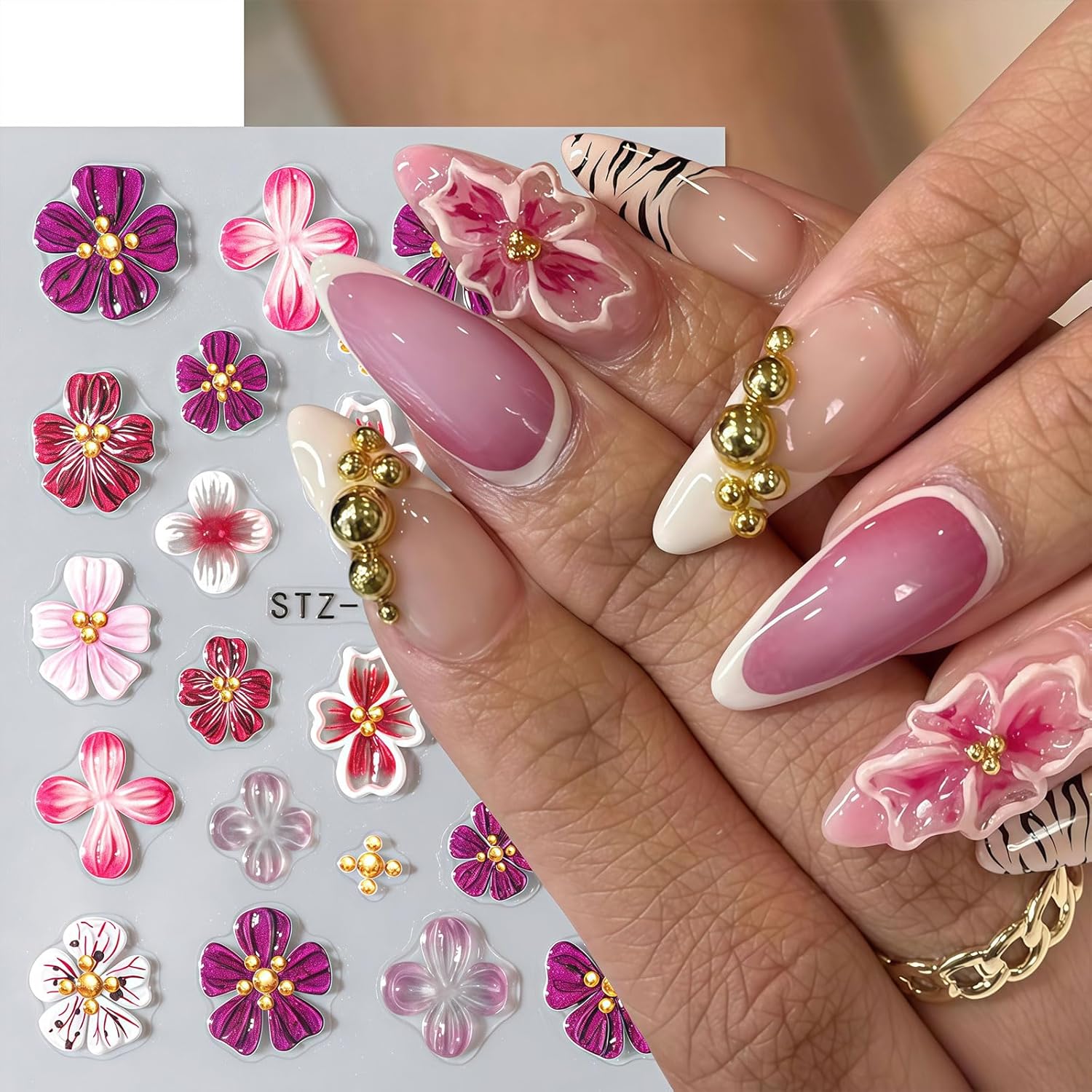 - ăSafety Materialsă Our flower nail decals are made of safe and environment-friendly materials, non-toxic, not limited to any skin, and safe to use. You can design your own unique nail effect.