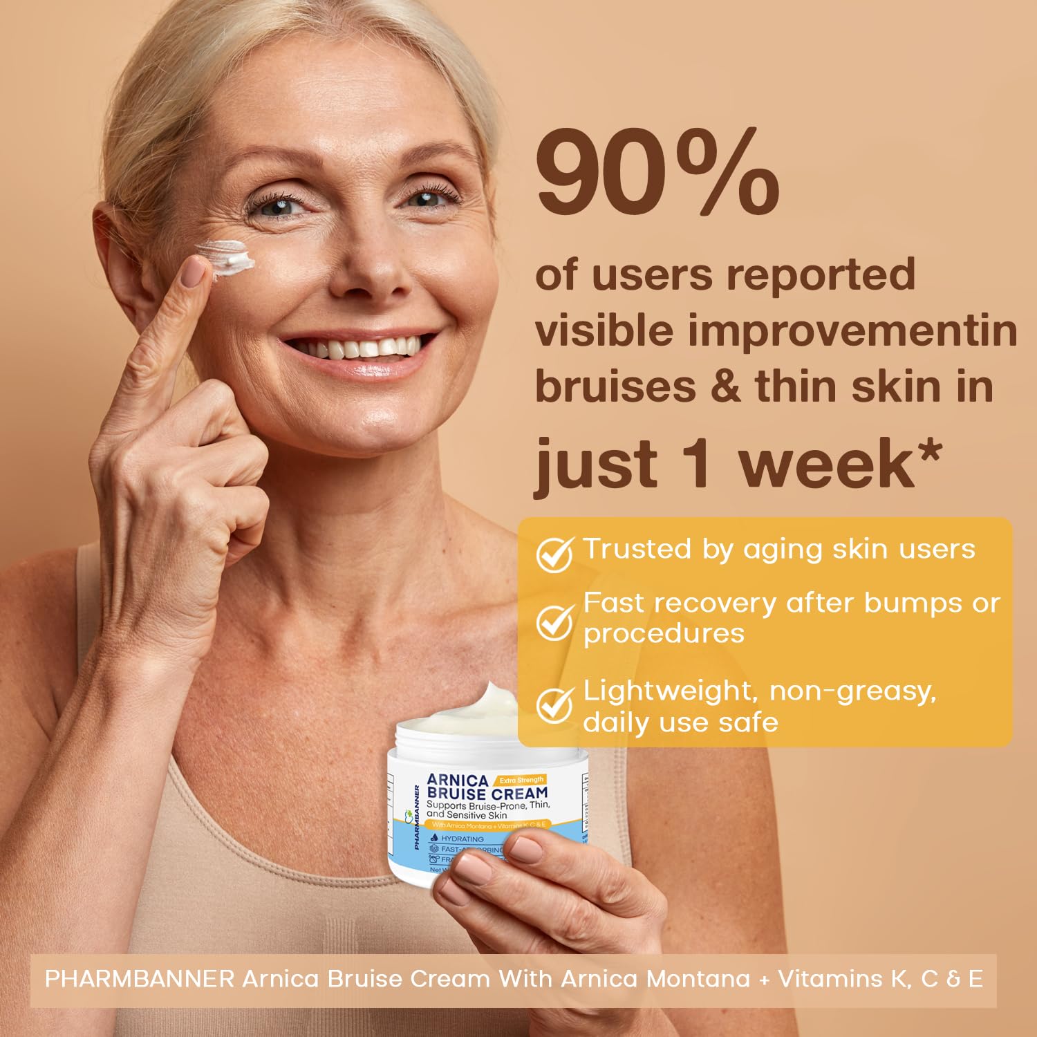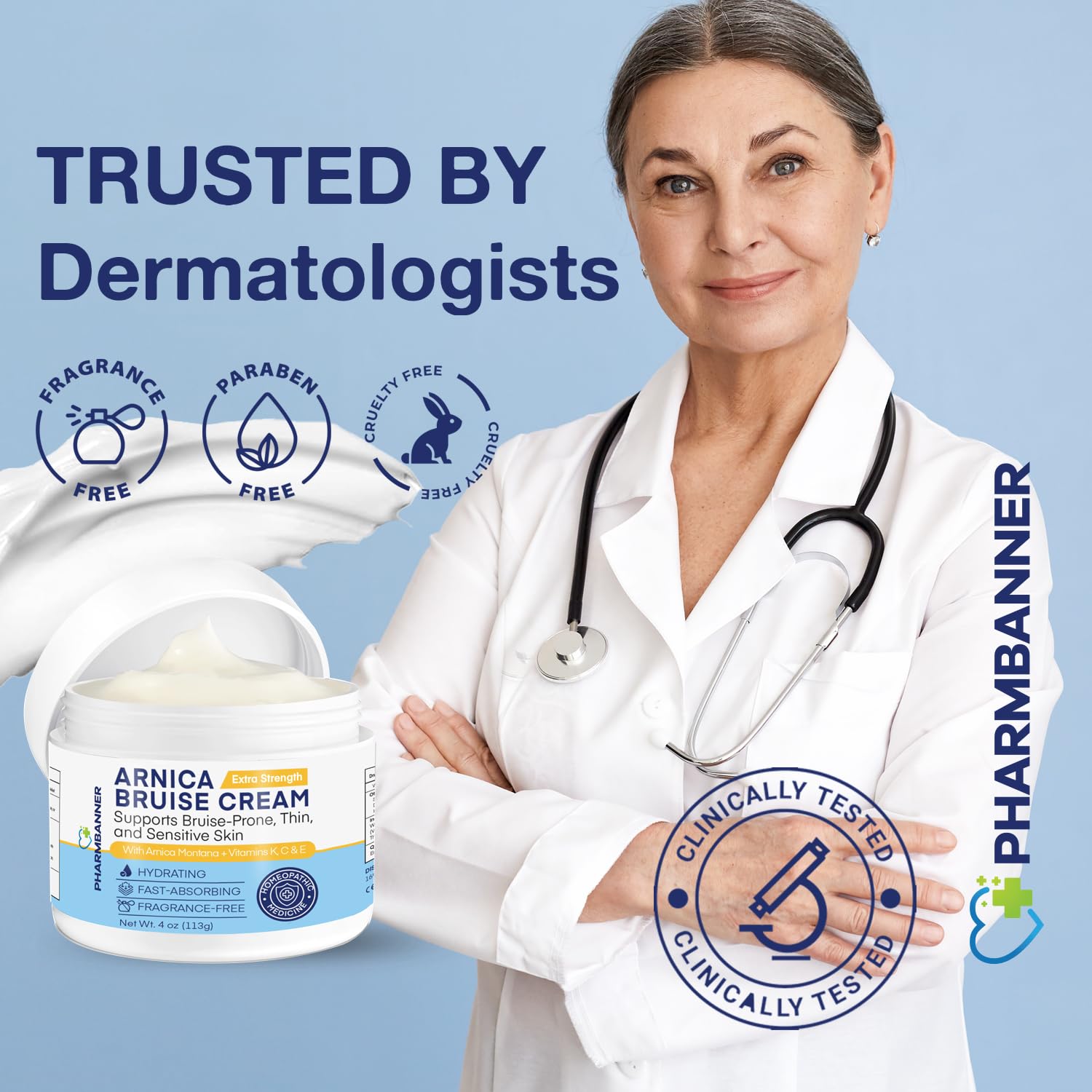 - ✅ DERMATOLOGIST-DEVELOPED & CLINICALLY TESTED Created by skincare professionals, PHARMBANNER bruise cream is gentle, cruelty-free, and safe for long-term use. Clinically tested to reduce bruising, dryness, and improve the appearance of aging skin.