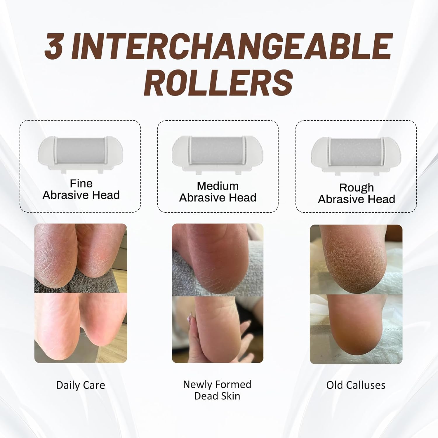 - 【Electric Foot Care Set】This SilkGlow foot care tool set comes with 3 replacement roller heads (fine roller head for daily care, medium roller head for new dead skin, coarse roller head for calluses), a cleaning brush, a charger, and 10 pieces of foot care accessories, meeting your diverse care needs without the need to spend extra time and money going to a salon.