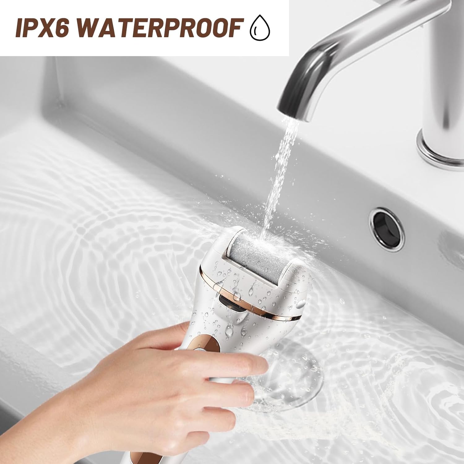 - 【IPX6 Waterproof】This dry skin foot exfoliator is completely waterproof and can be rinsed under running water. You can use it after showering to give your feet the perfect foot care treatment. Dry your feet before use for best results. Note: the charging port of the foot file is not waterproof.