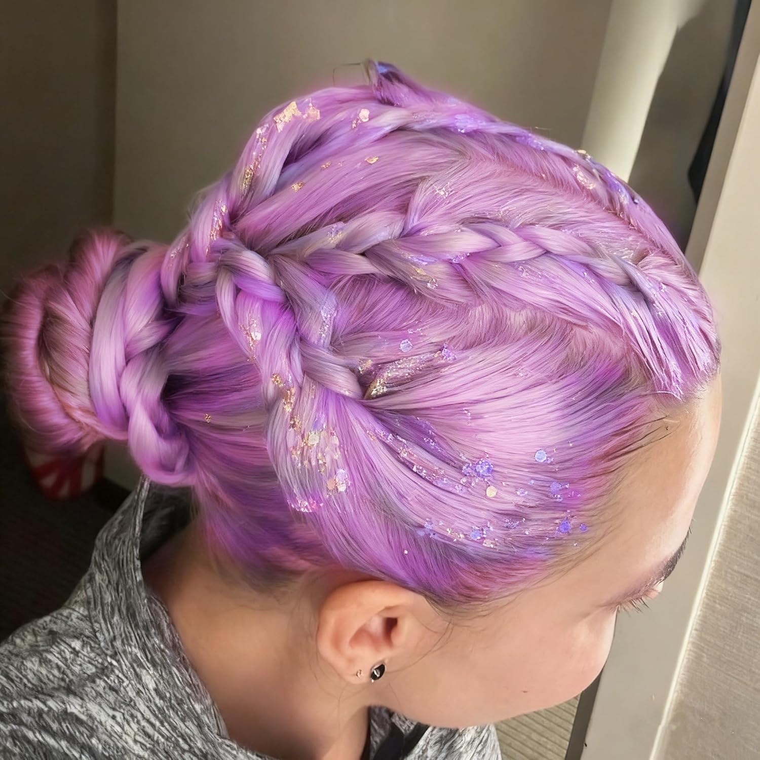 - Pastel Purple Glitter Holographic Effect:This chunky glitter blends with plenty of different shapes and sizes of chunky and fine glitters in a gel base,great for a metallic coverage wtih a holographic effect.The mermaid sequin glitters have vibrant color,which shows up as an ultra-reflective and shiny sparking shimmer smear.