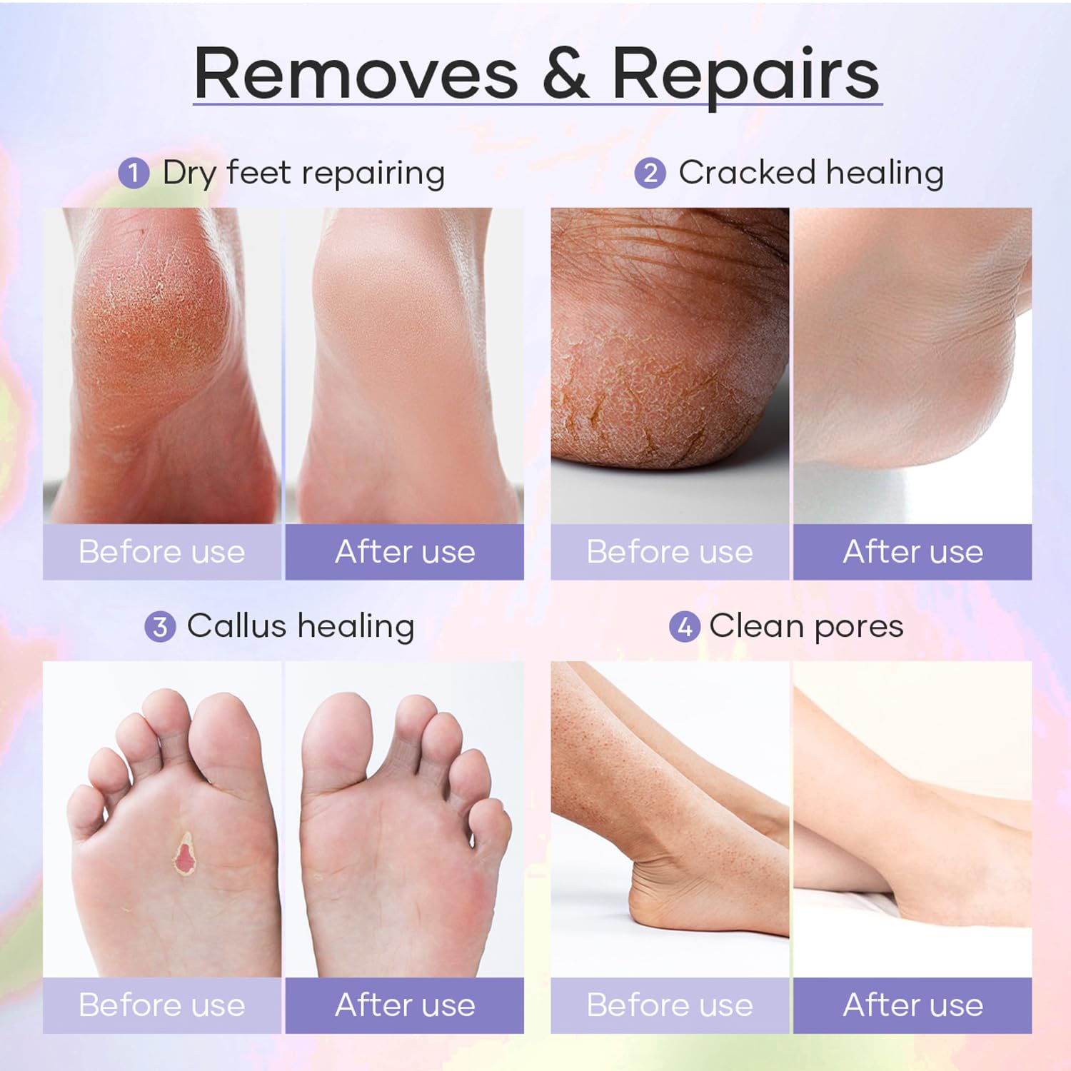 - Step 2: Callus Remover Gel – Fast-Acting Treatment – Extra-strength gel quickly breaks down hardened calluses and rough patches. Professional-grade formula smooths even the toughest heels, leaving skin soft and renewed.