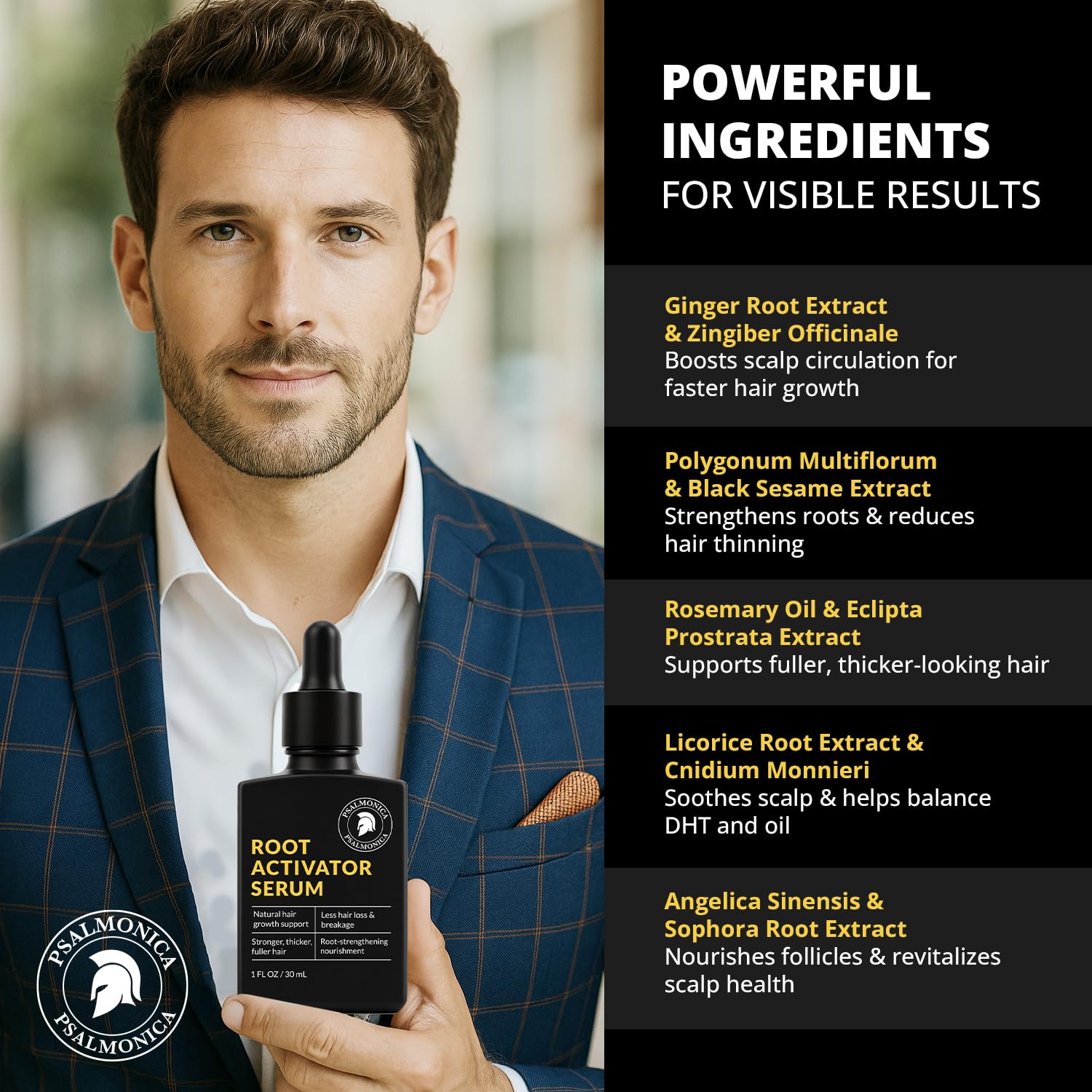 - ✅ Formula Inspired by Root Activator Shampoo – This upgraded hair growth serum blends herbal extracts like rosemary, ginger, and black sesame to nourish the scalp and support visible regrowth.